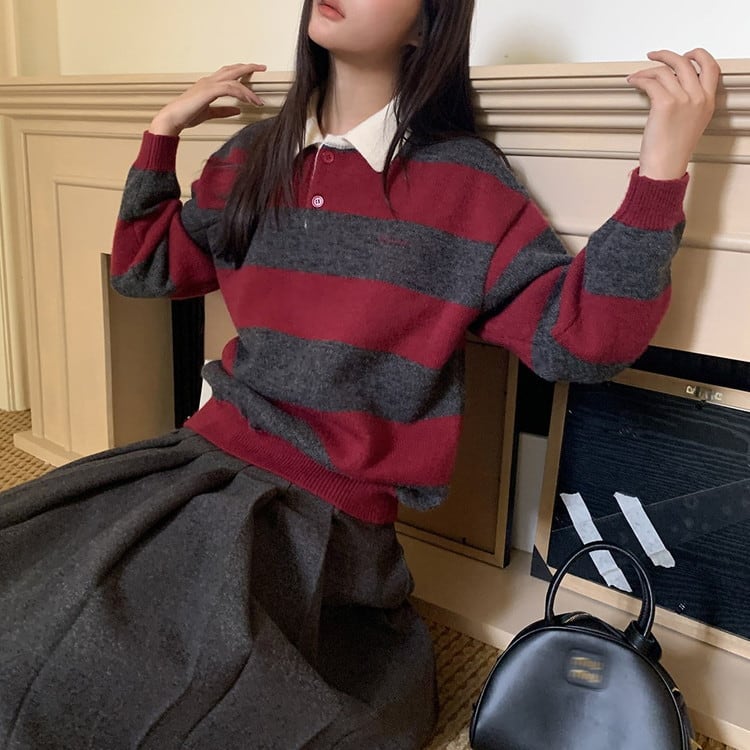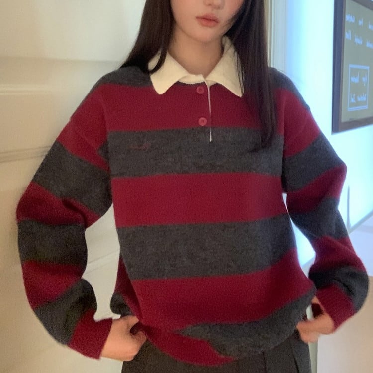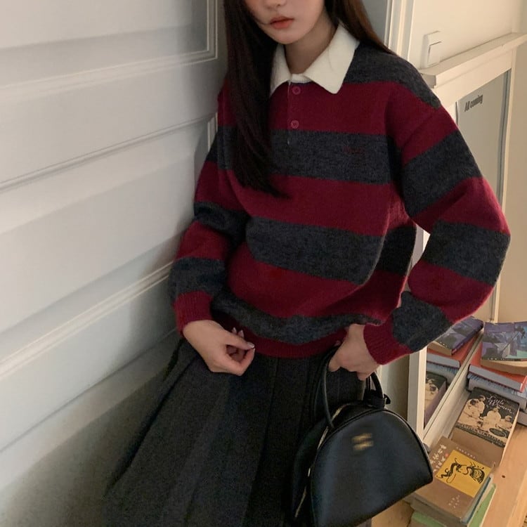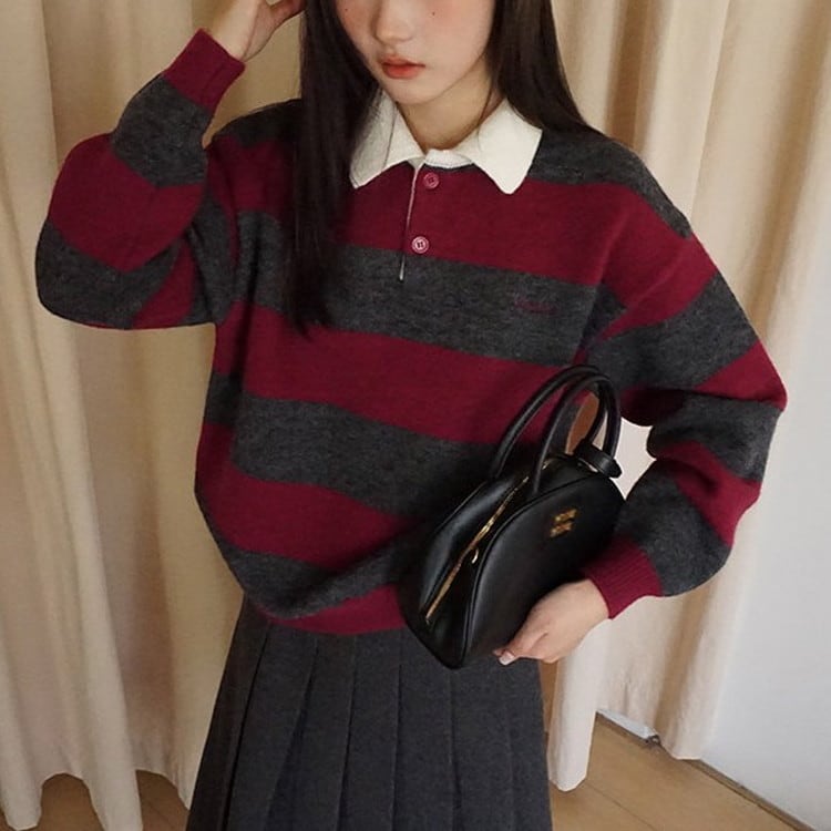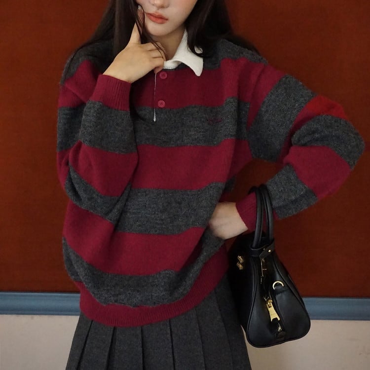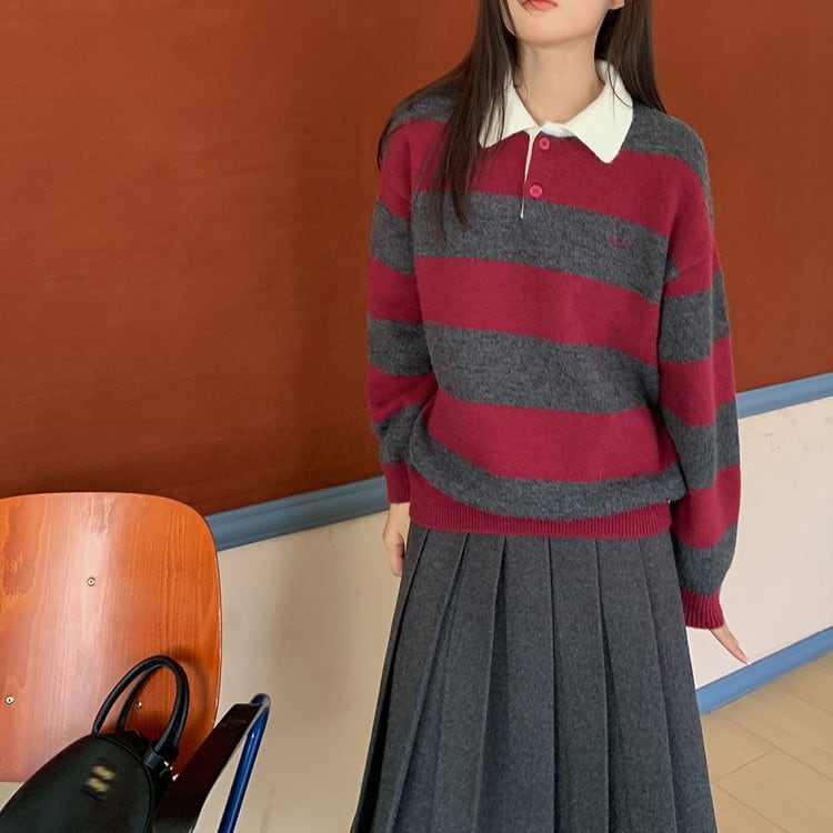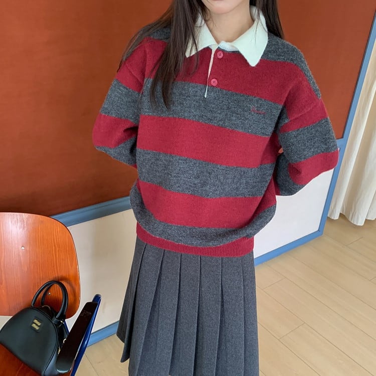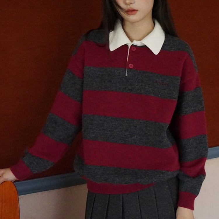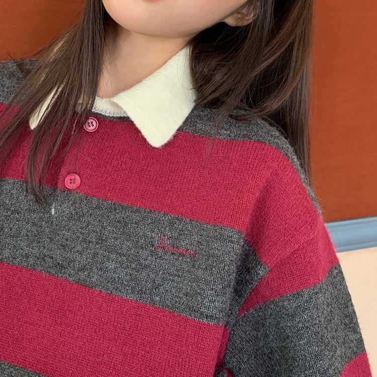 ポロカラーボーダーニット [am03614]