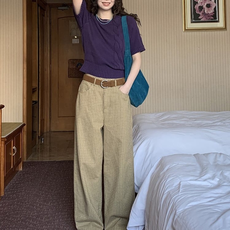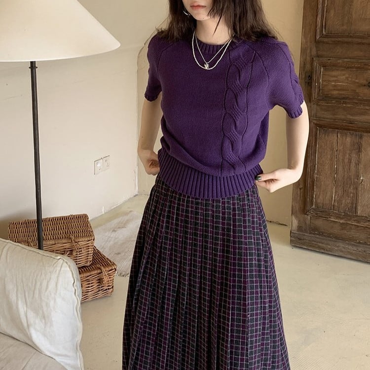 パープル半袖ケーブルニット [am03630]