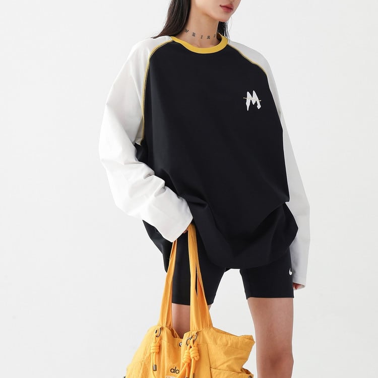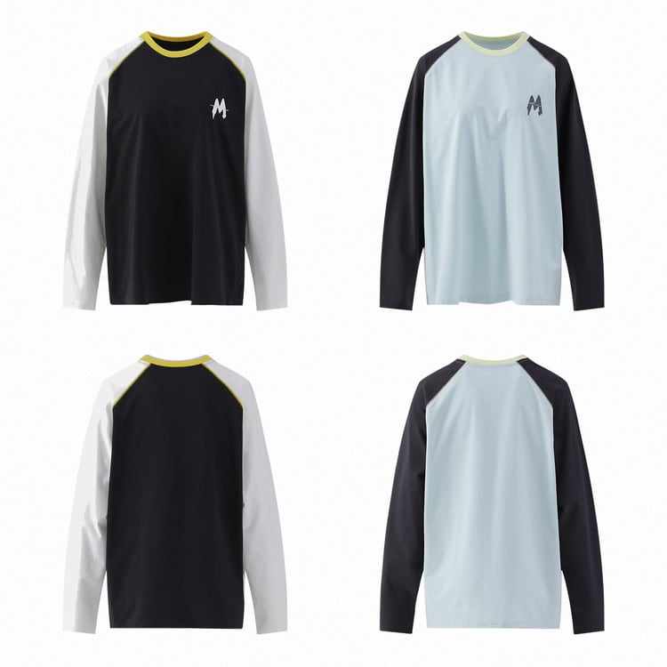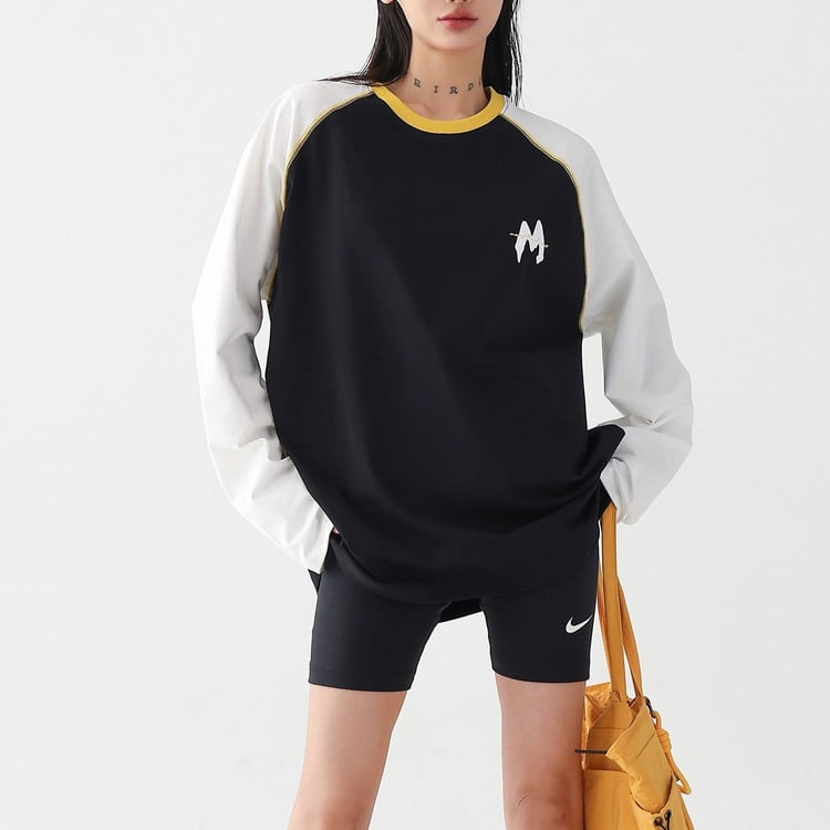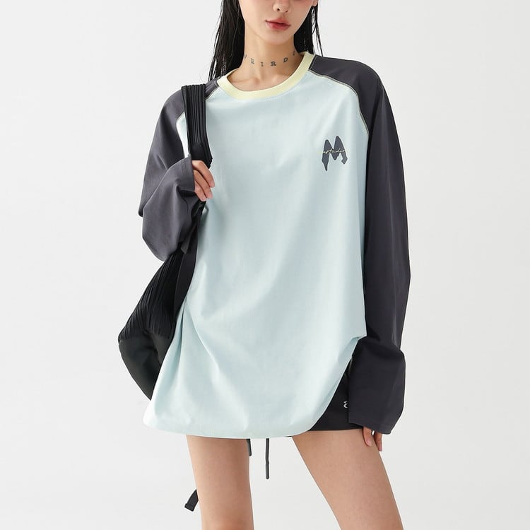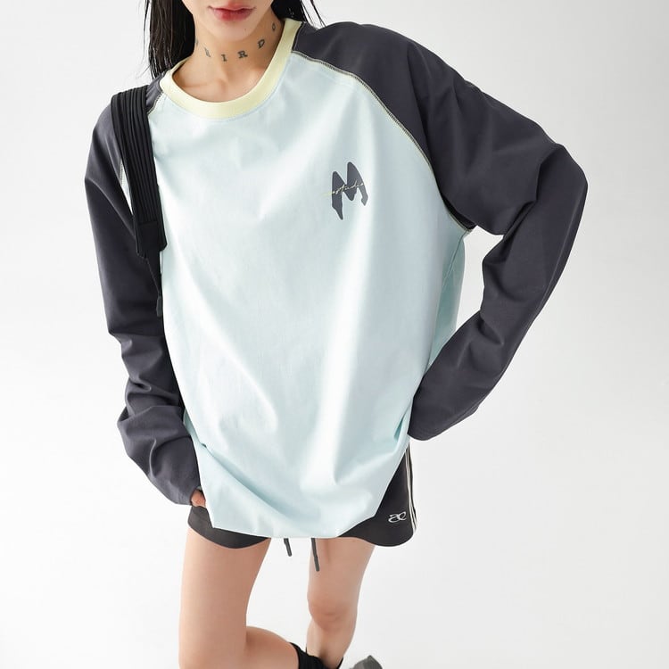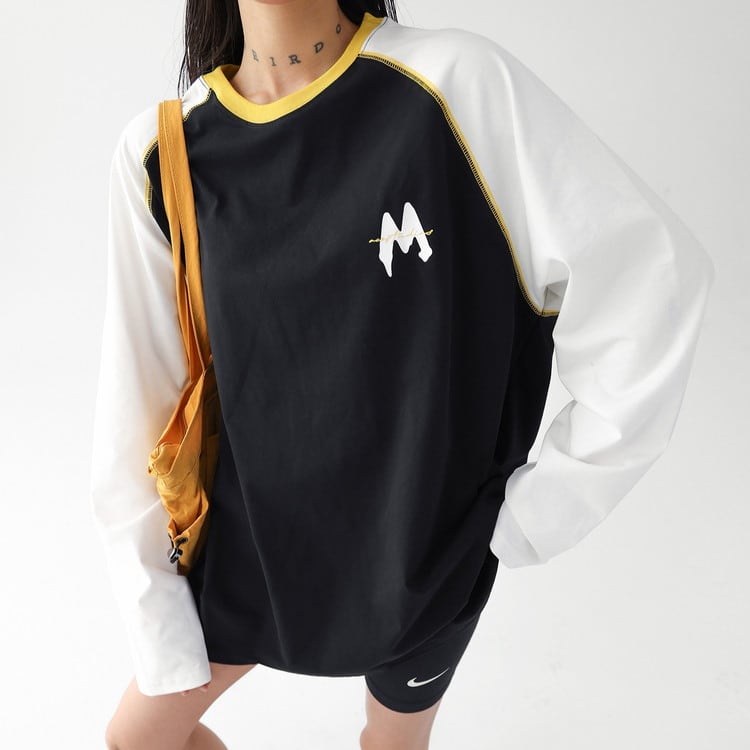カラー配色が映えるラグランリンガーロングTシャツです。