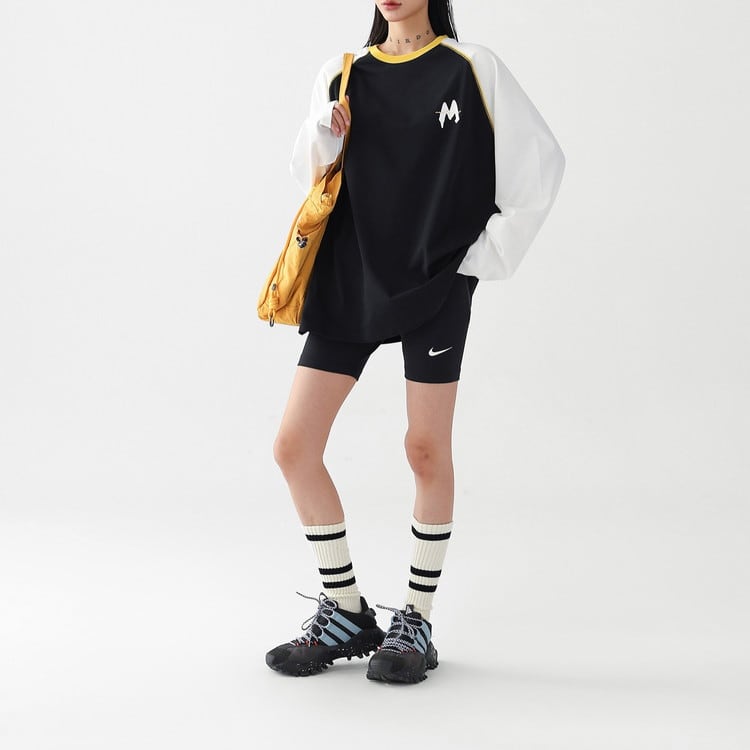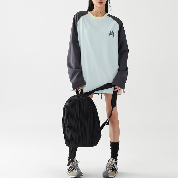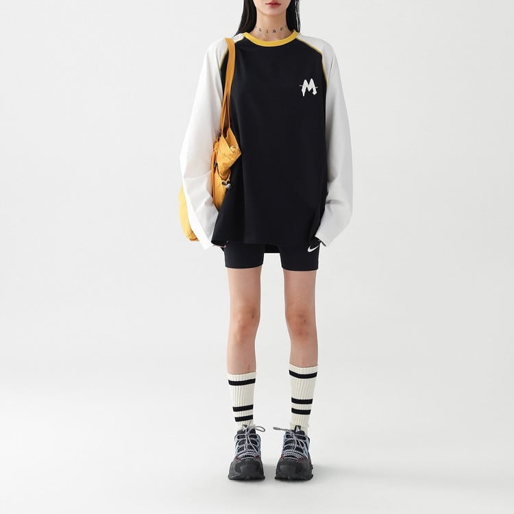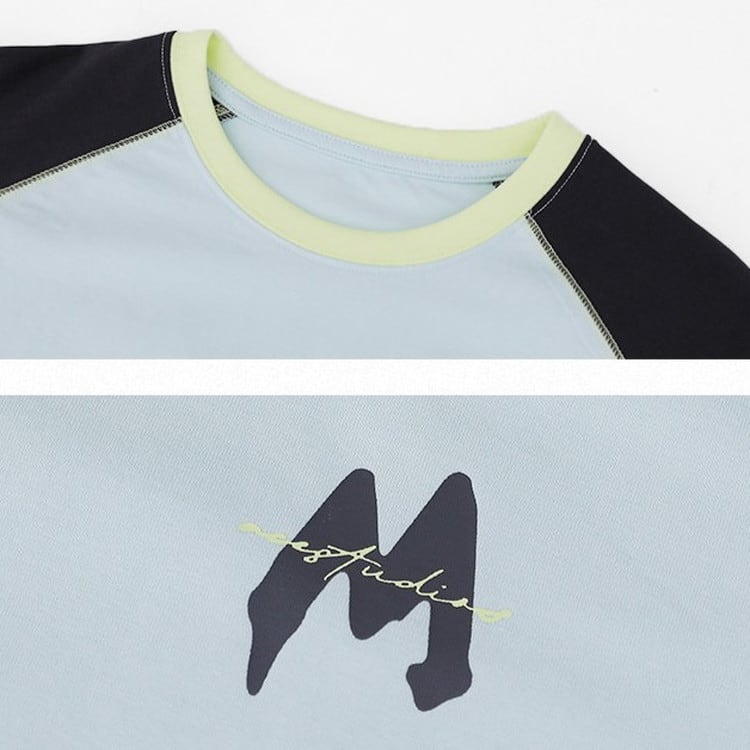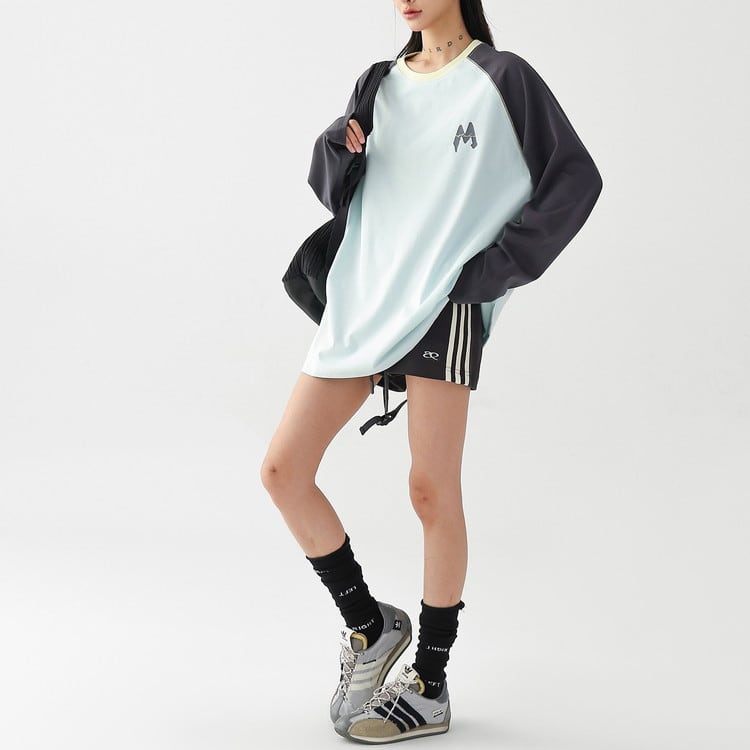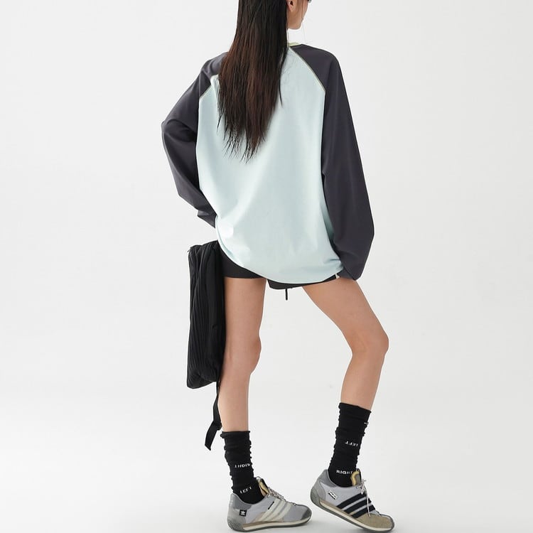 カラー配色が映えるラグランリンガーロングTシャツです。
