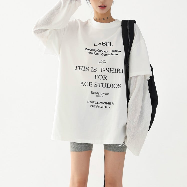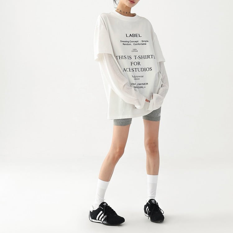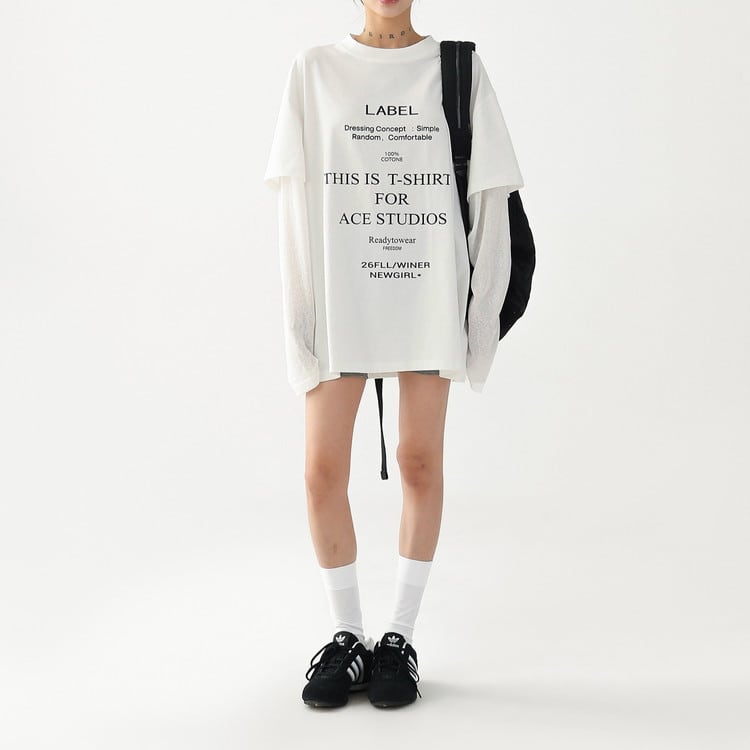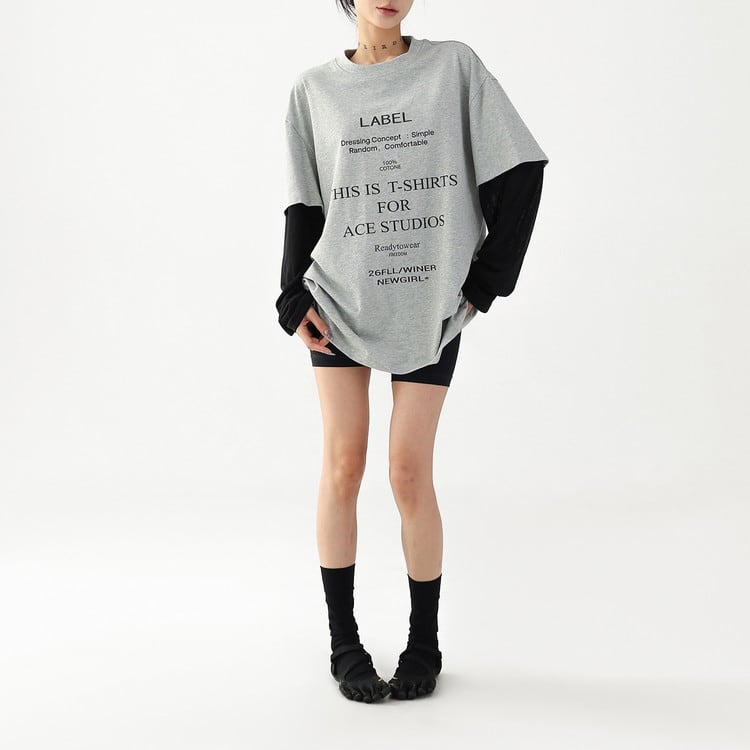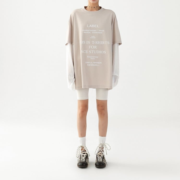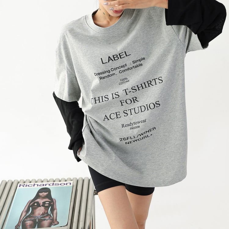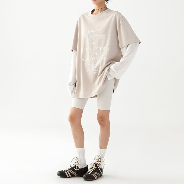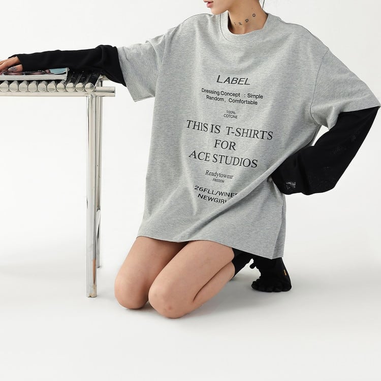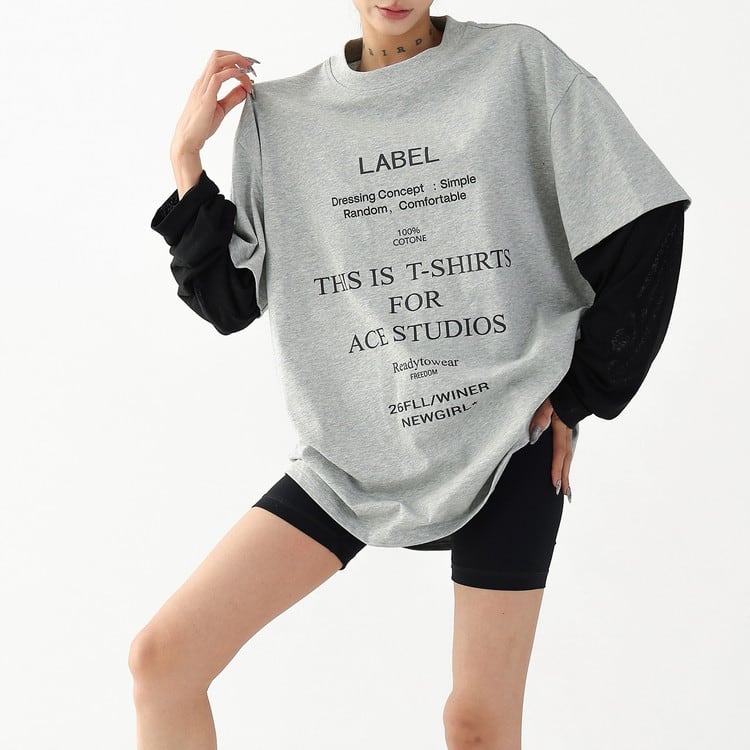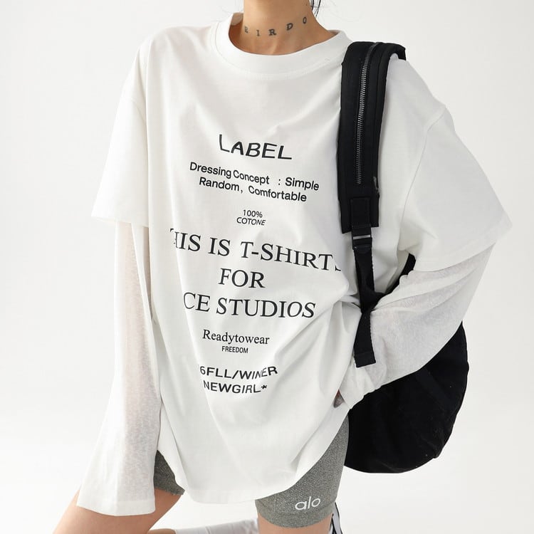 こなれ感漂うフェイクレイヤードテキストロングTシャツです。