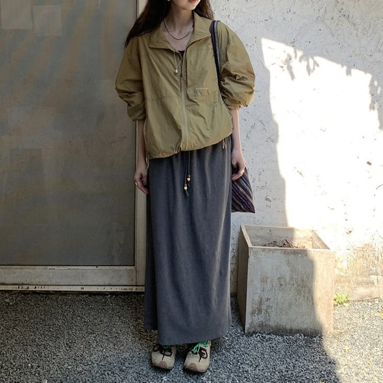 裾のドロストコードを絞ってシルエットの変化を楽しめて◎