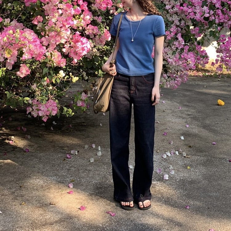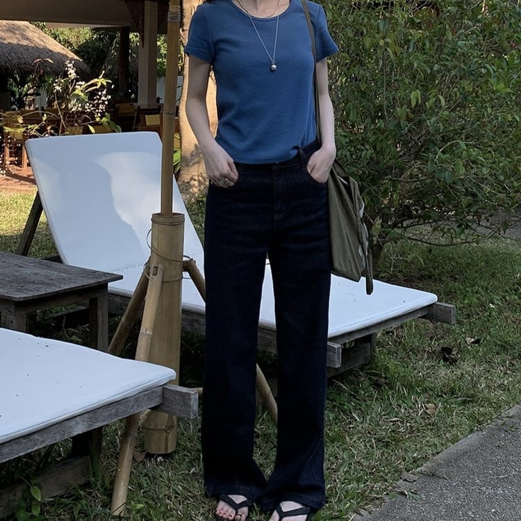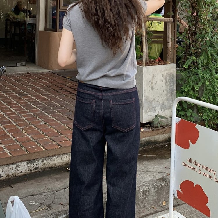 一枚は持っておきたいステッチストレートインディゴデニムパンツです。