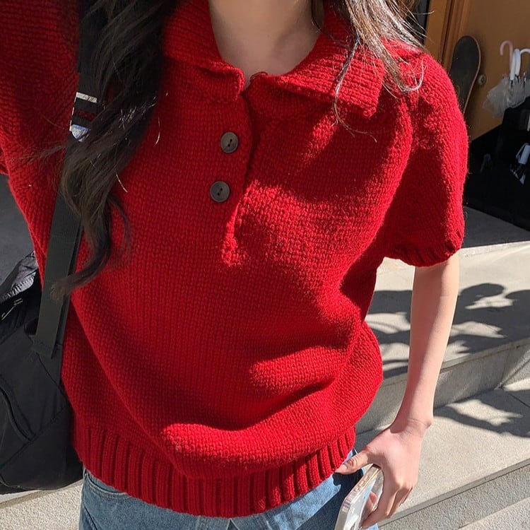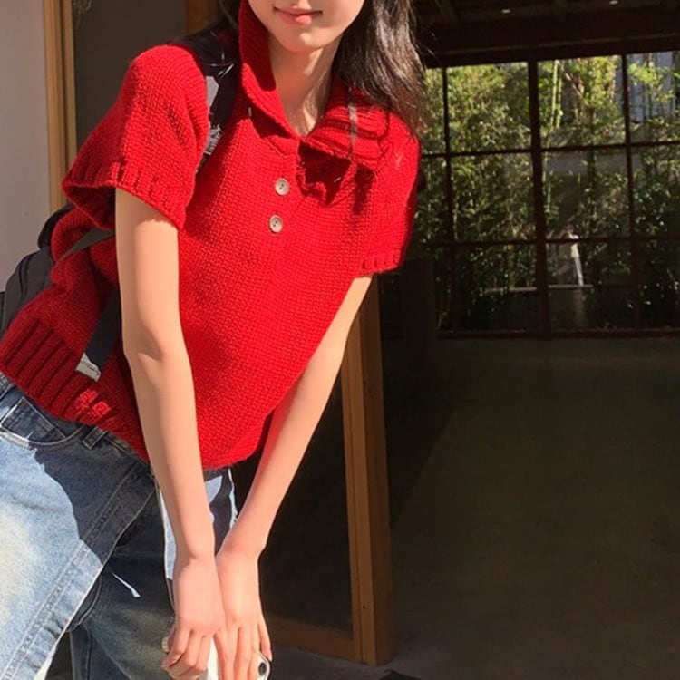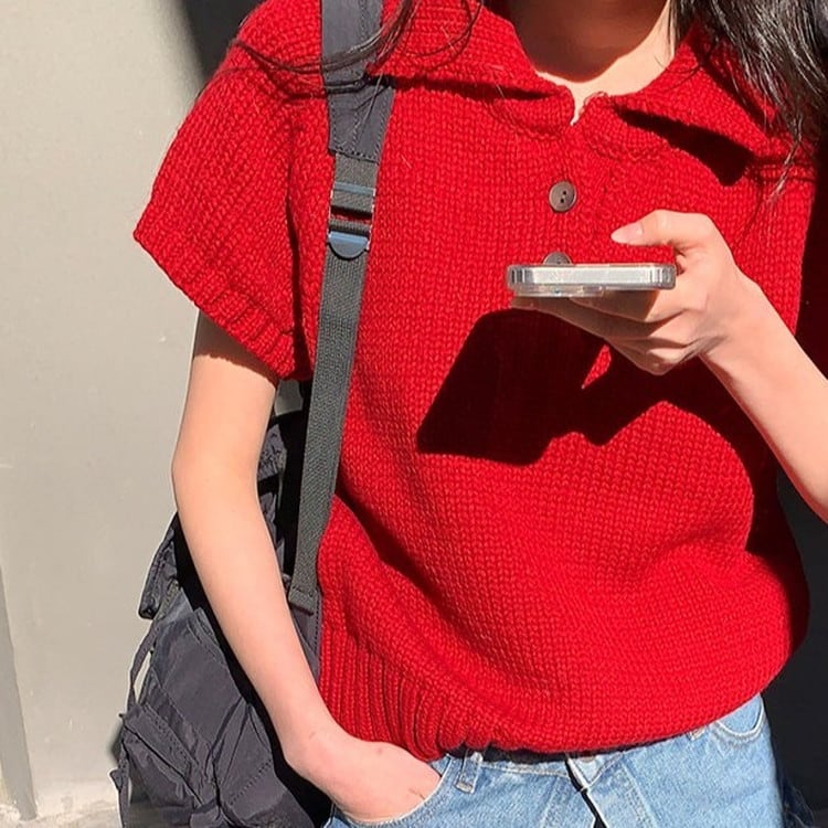 半袖ポロチャンキーニット [am03652]