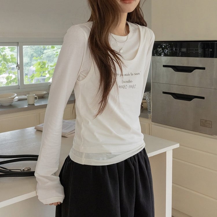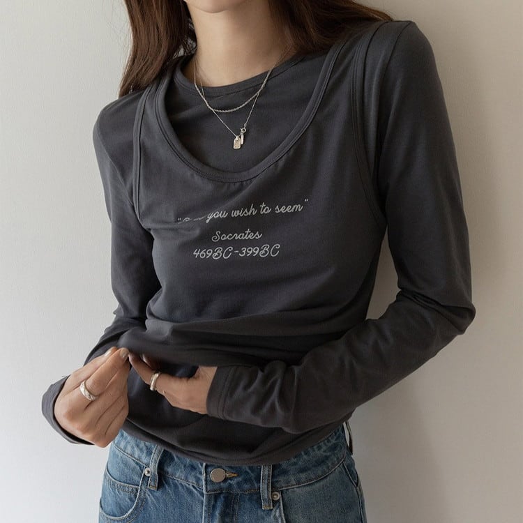 着回し力抜群のテキストタンクロングTシャツセットです。