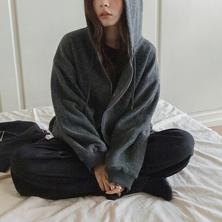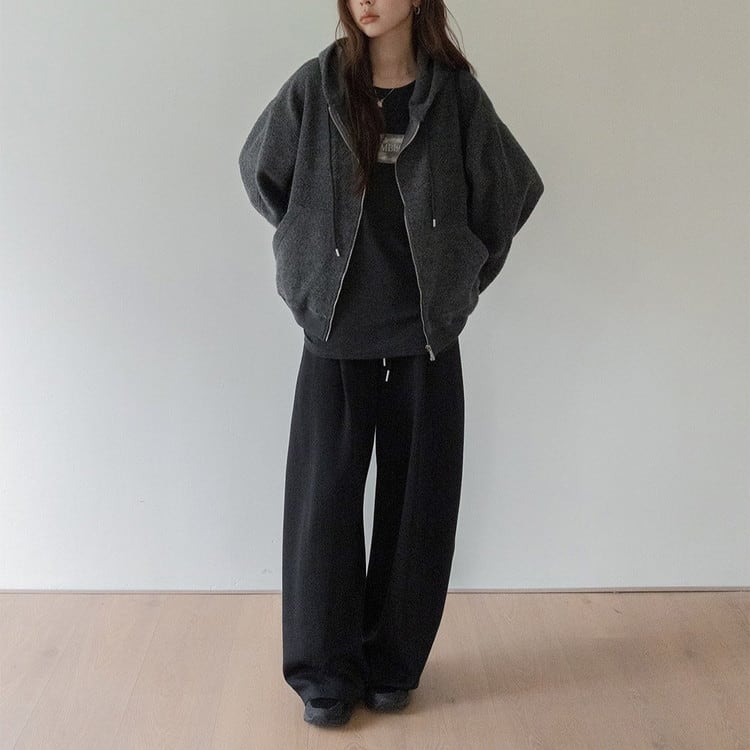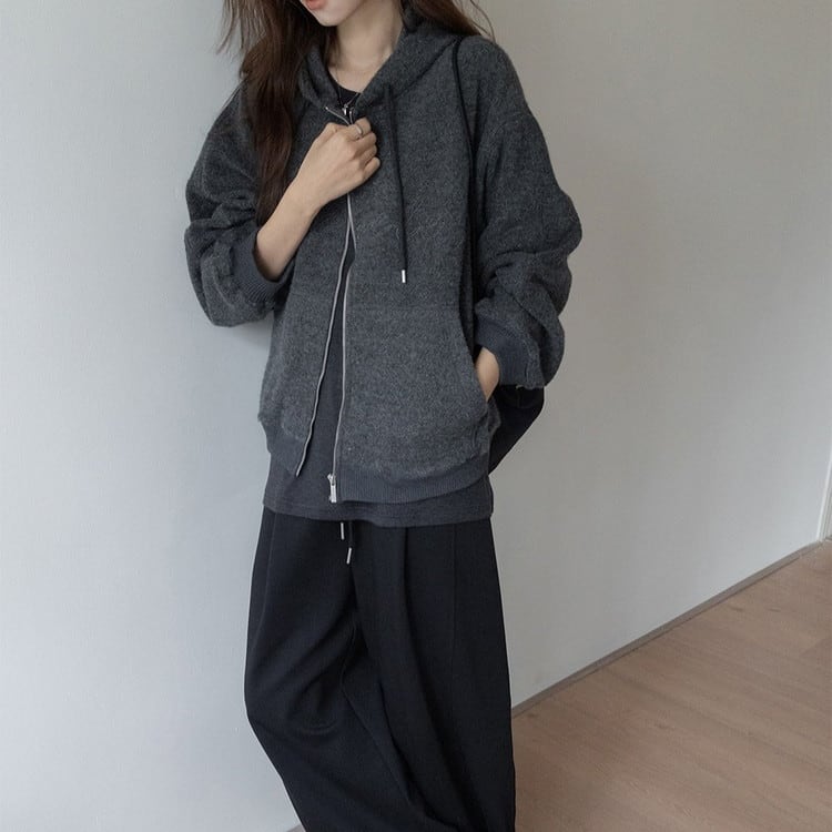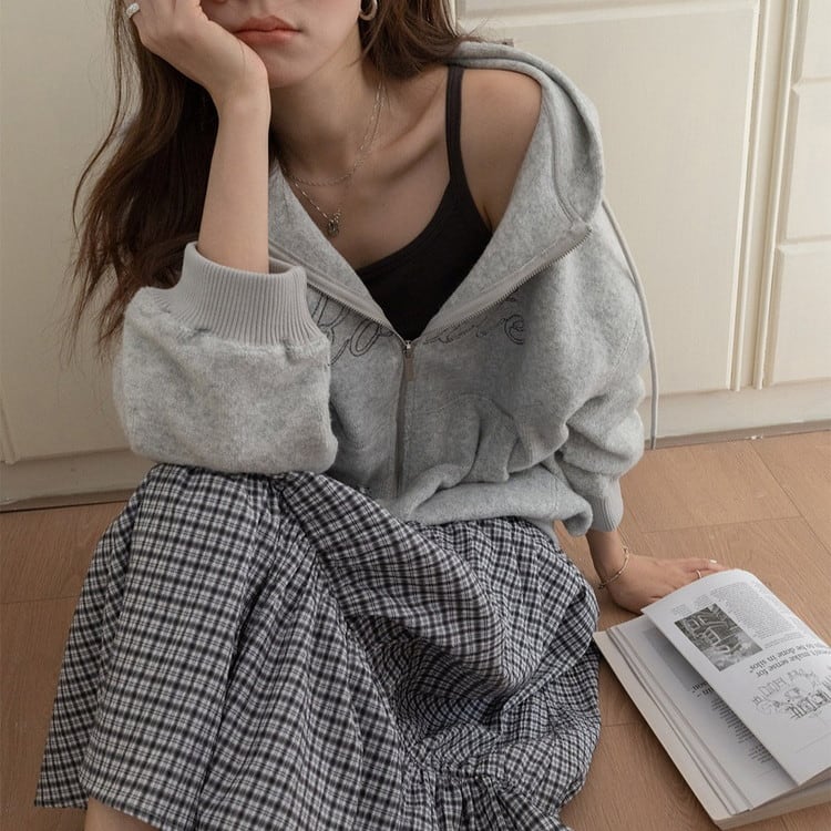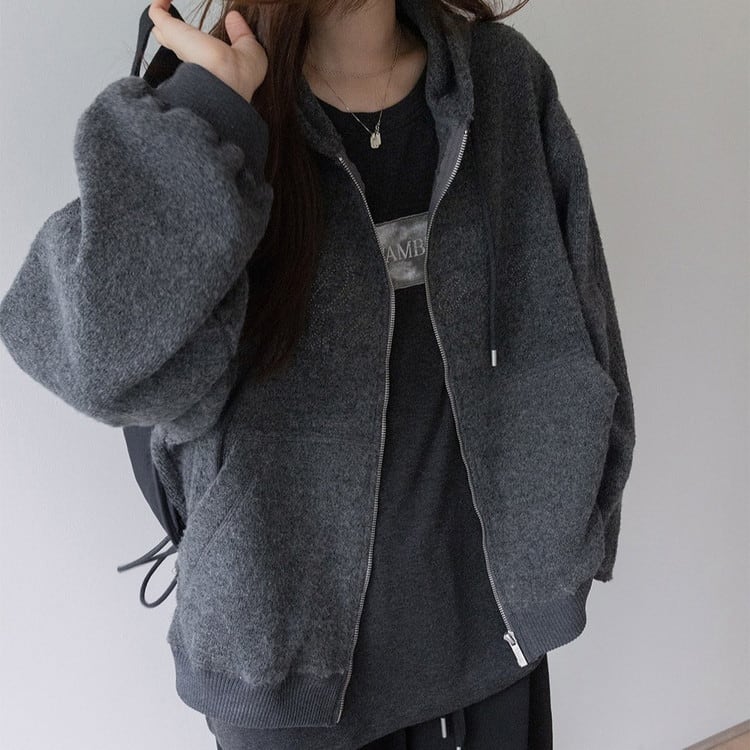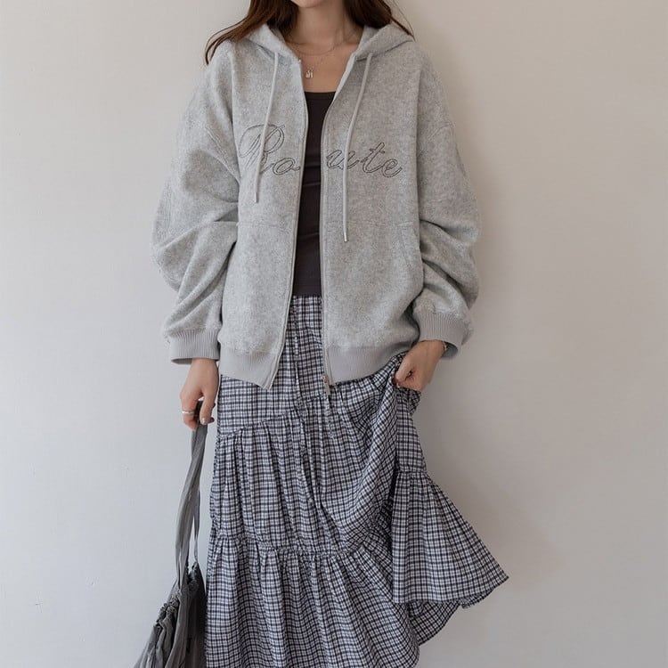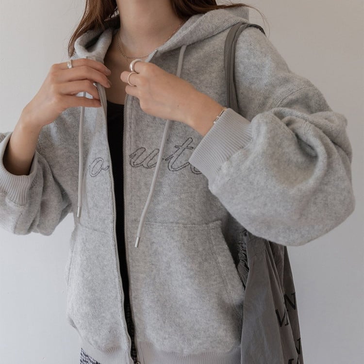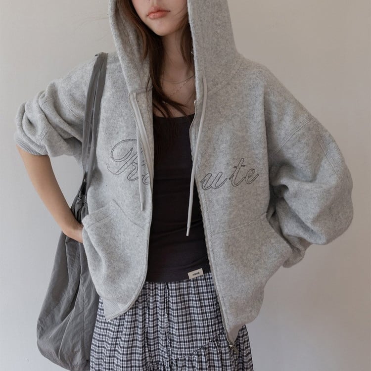 オーバーサイズロゴジップスウェットフーディ 2color [am03666]