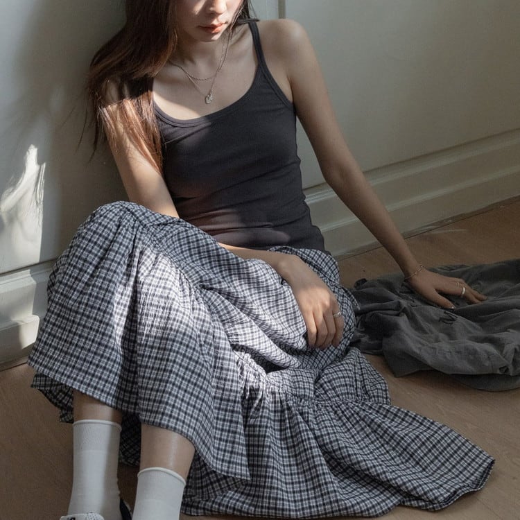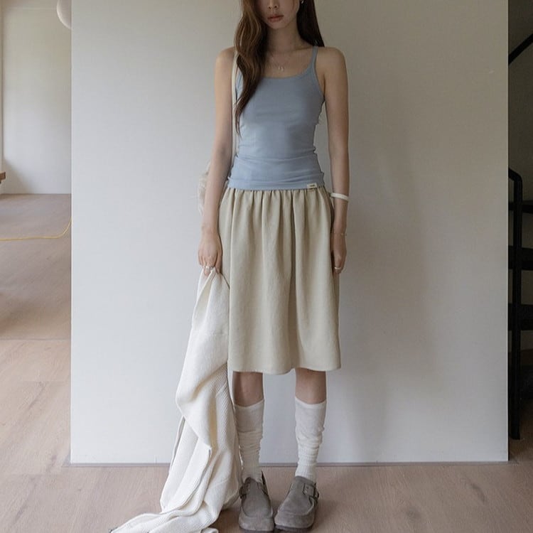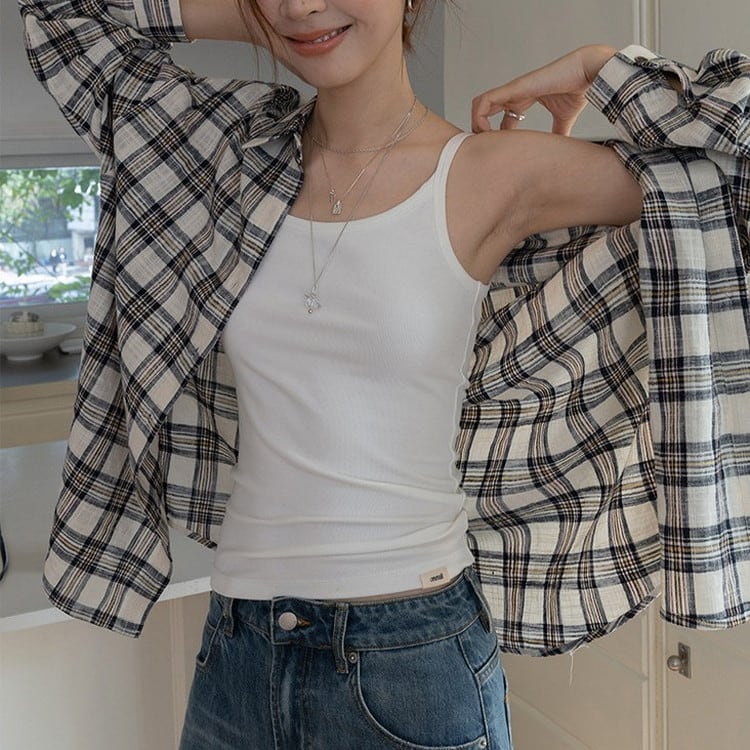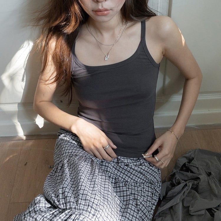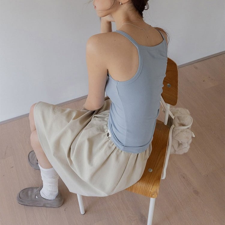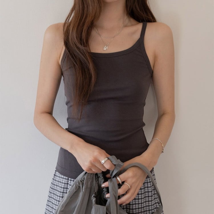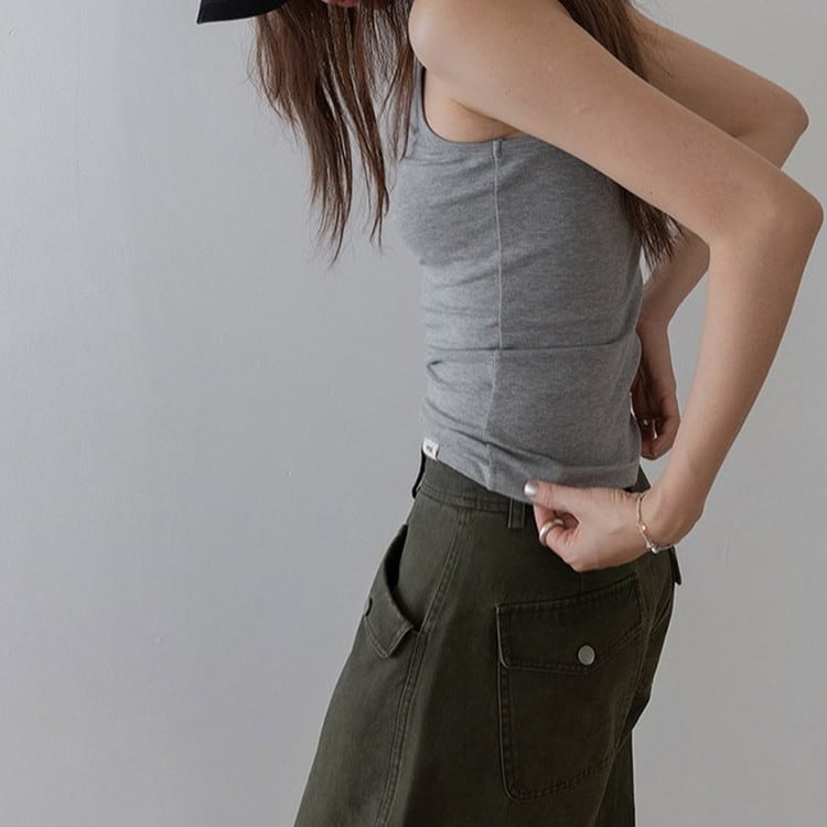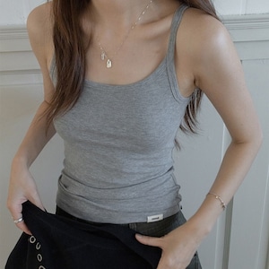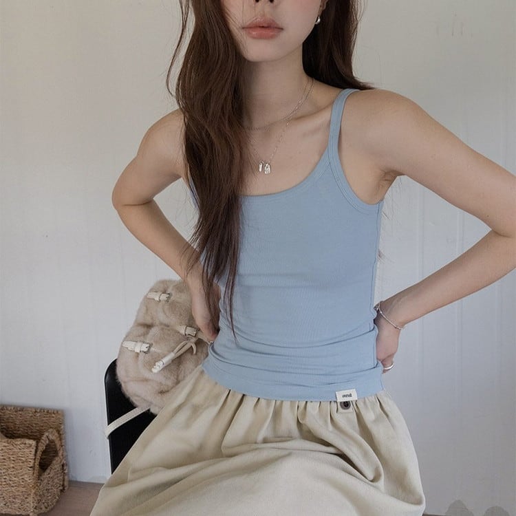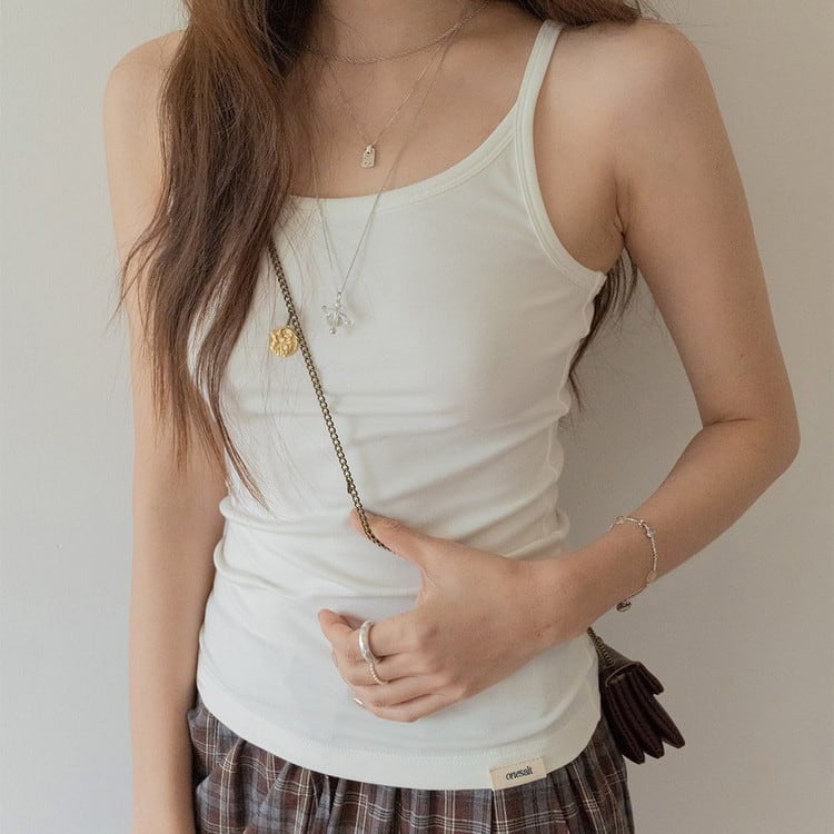 オールシーズン活躍するスリムフィットUネックキャミソールです。