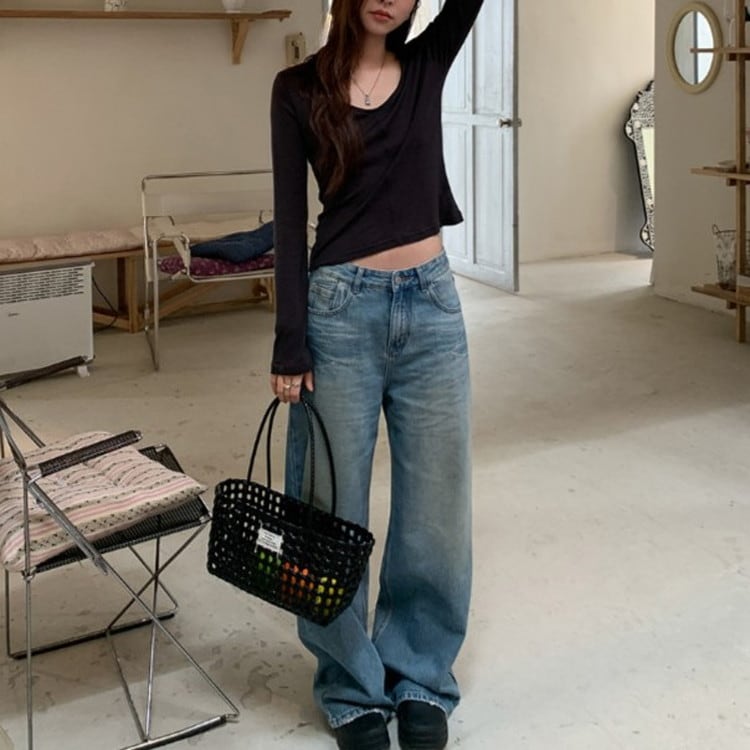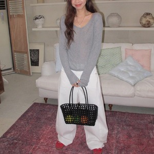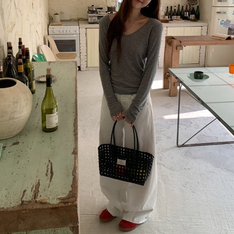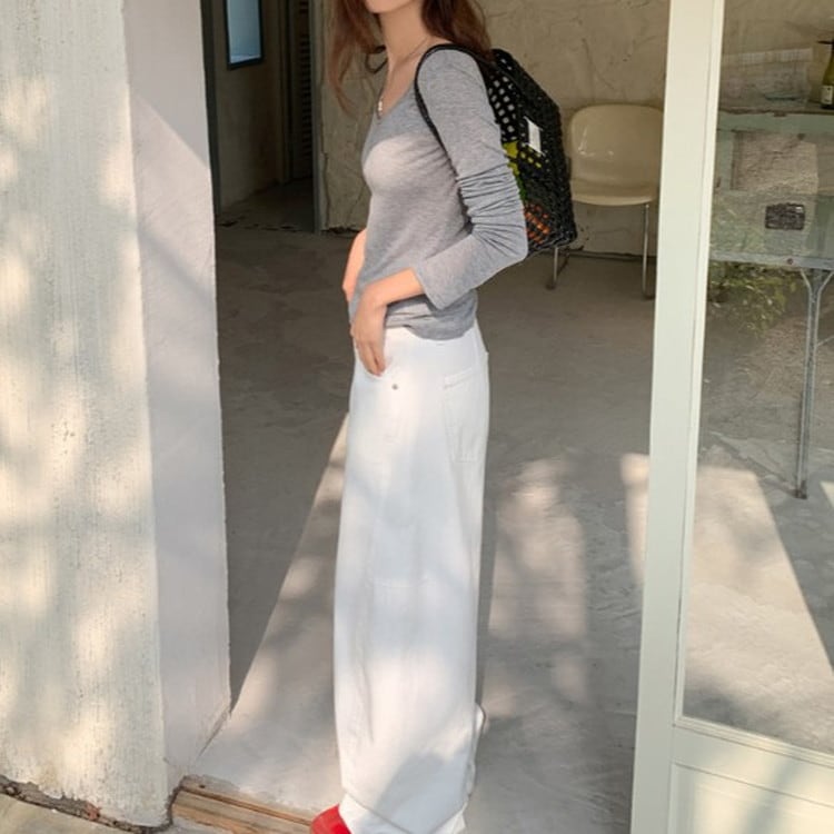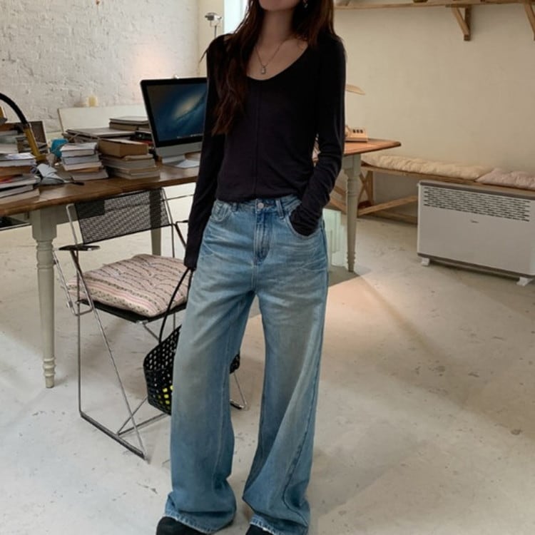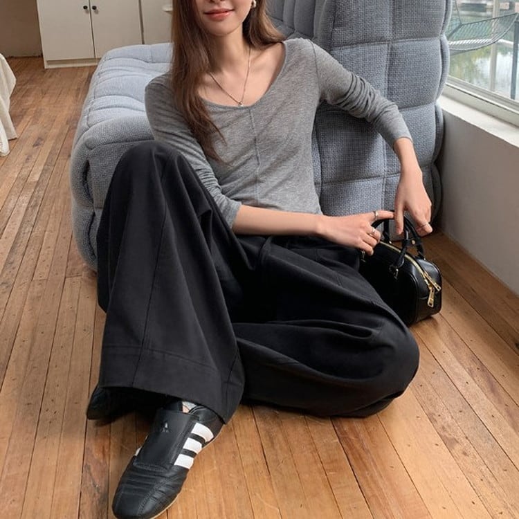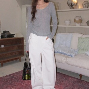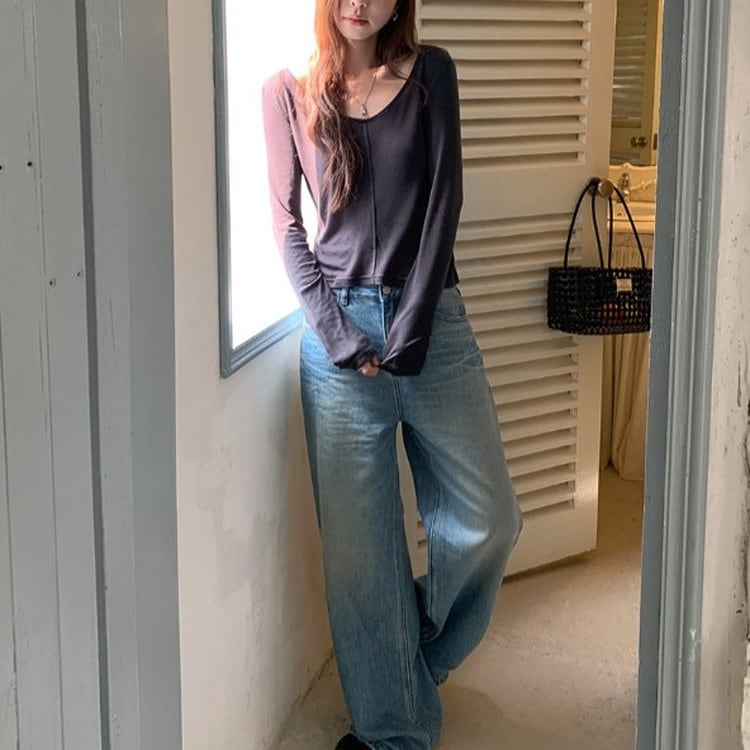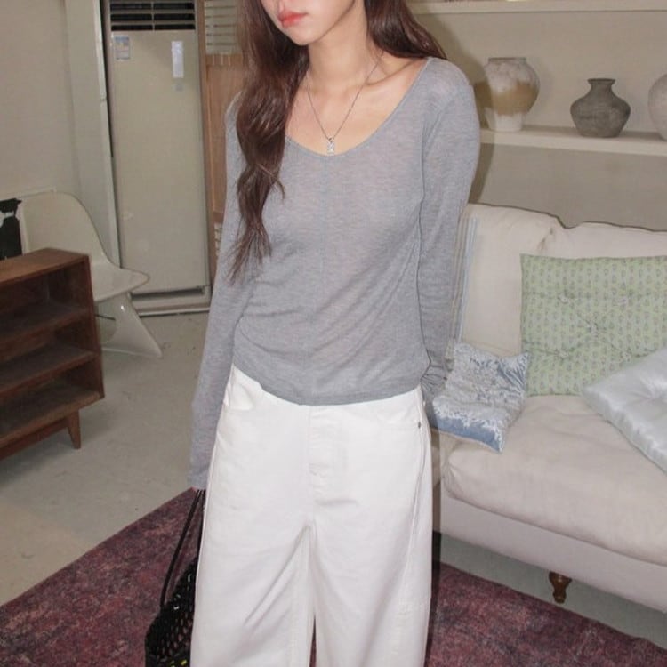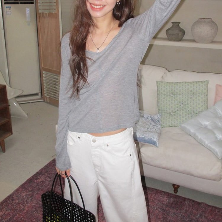 スリムフィットワイドVネックロンTee 2color [am03675]