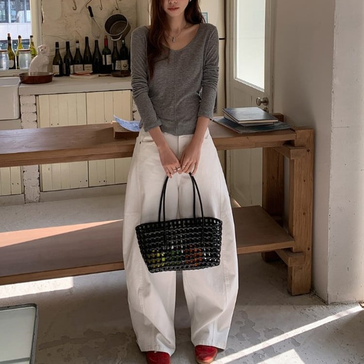程よく開いた緩やかなVネックデザインにより、デコルテをきれいに魅せてくれて◎