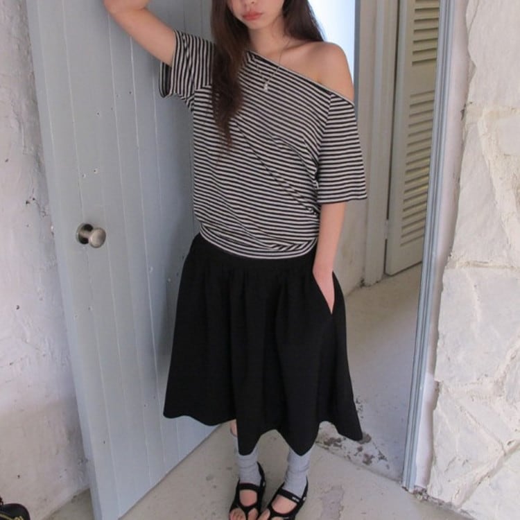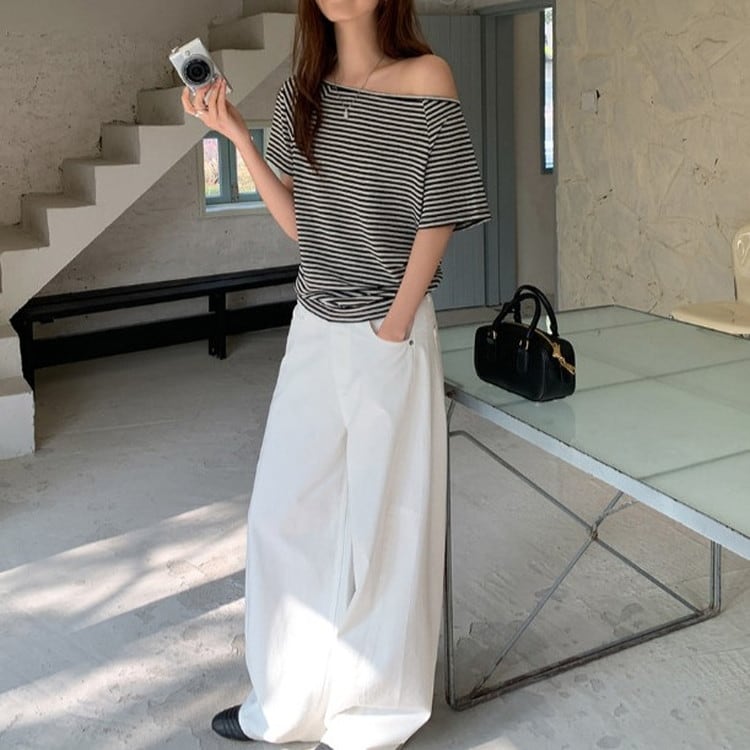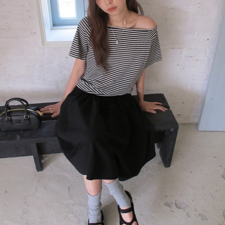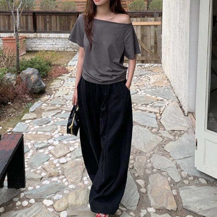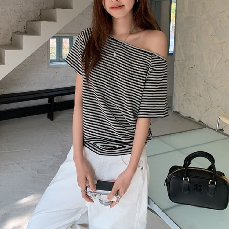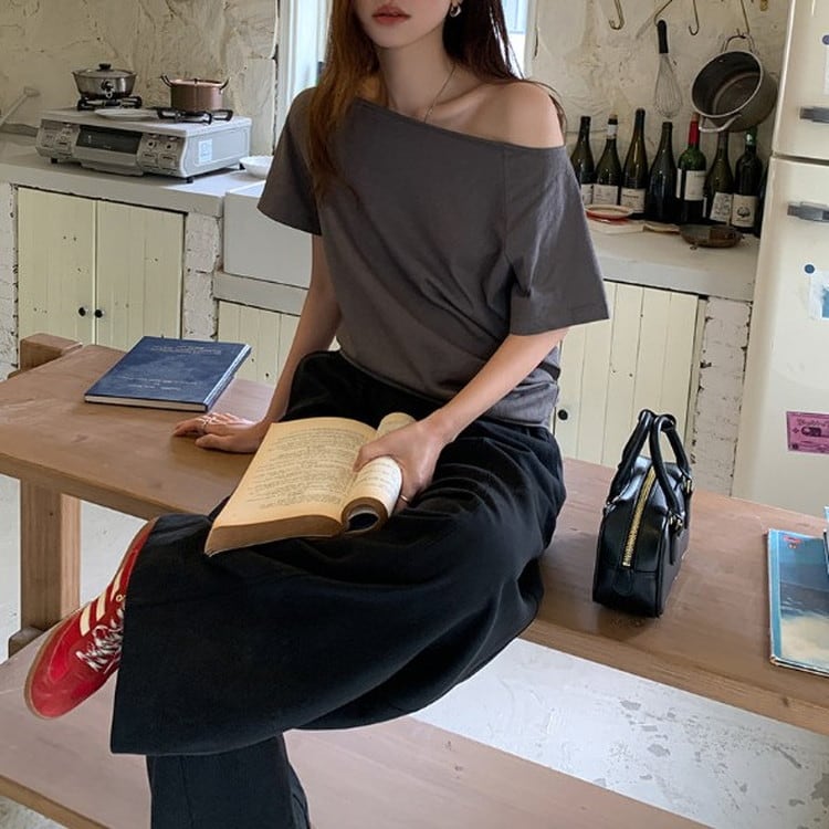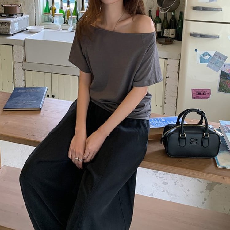 オフショルダー半袖Tee 2color [am03679]