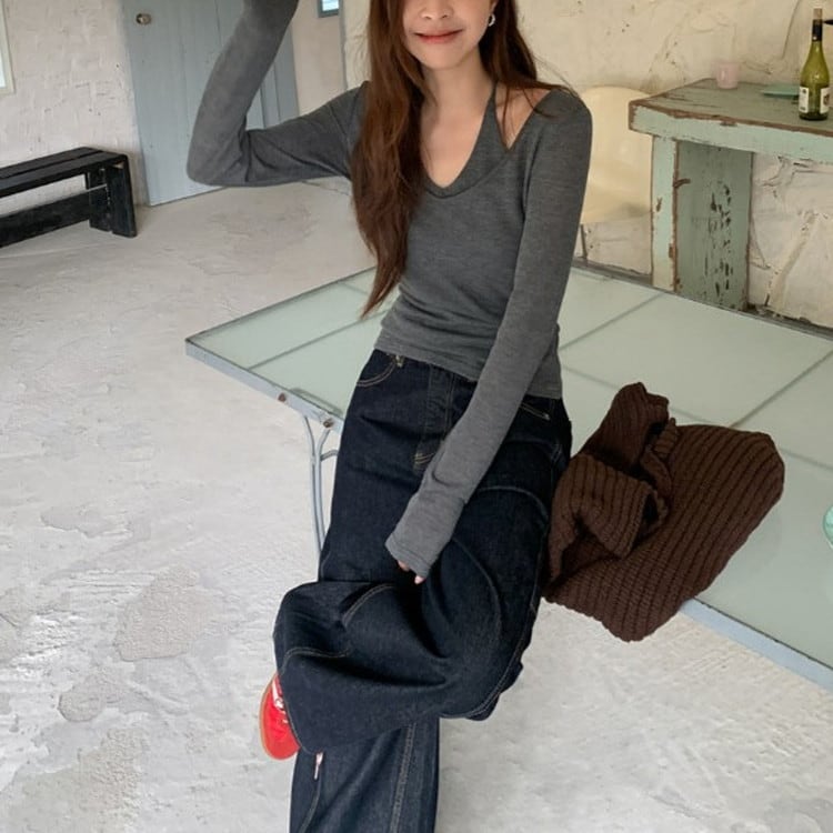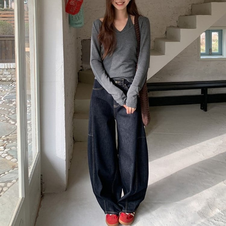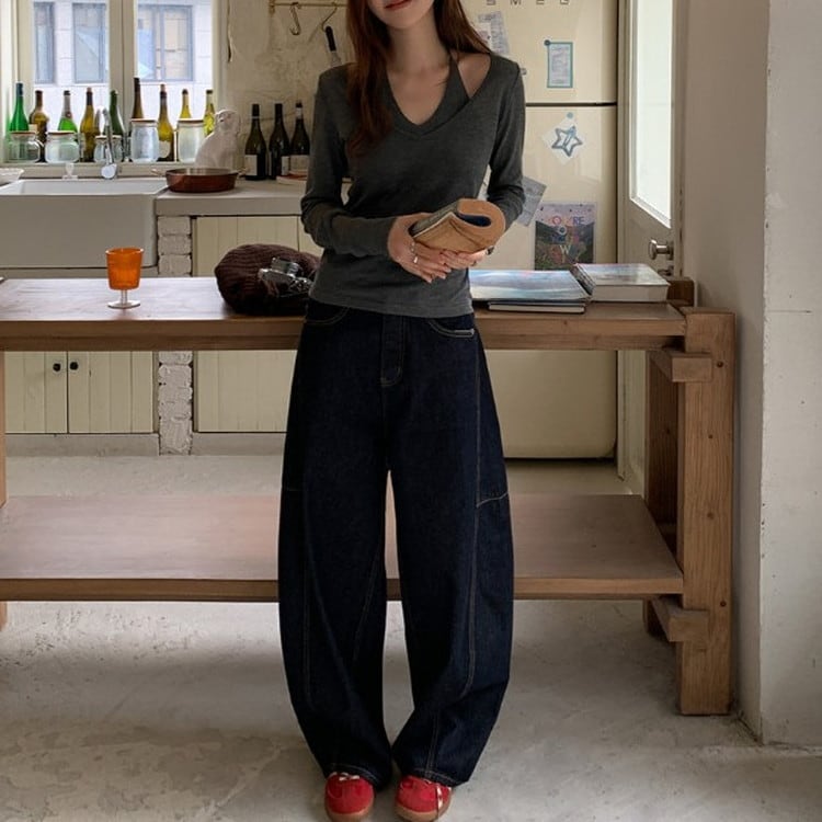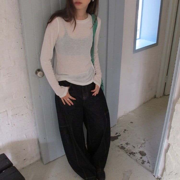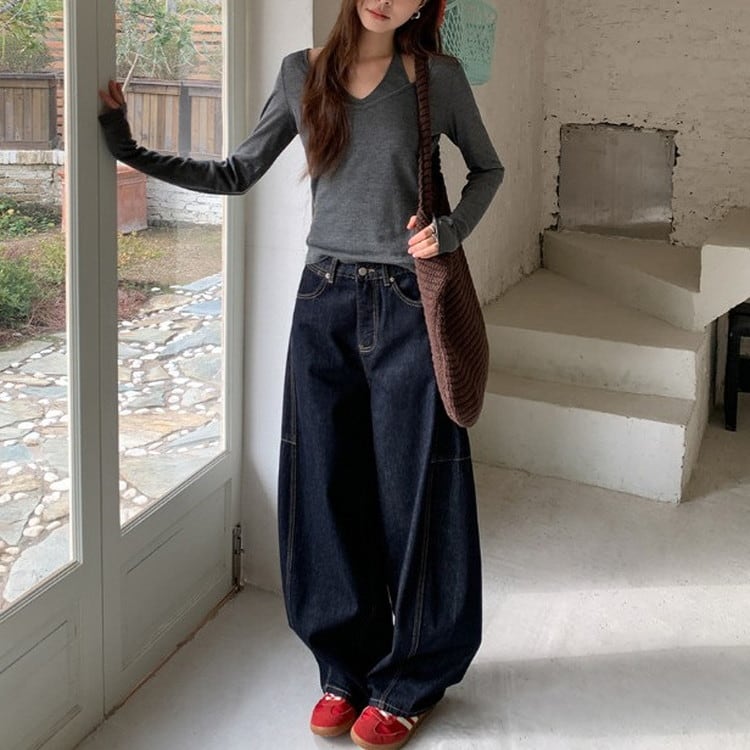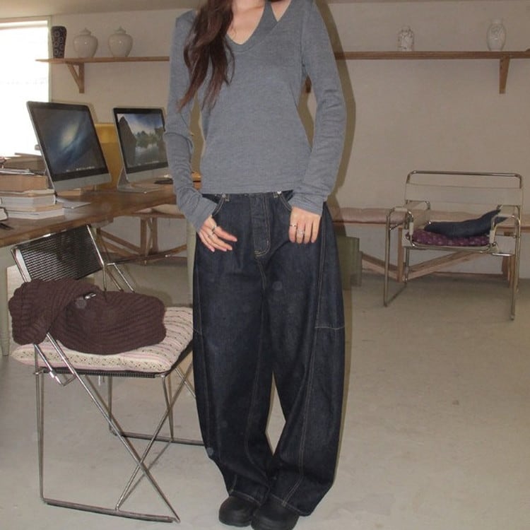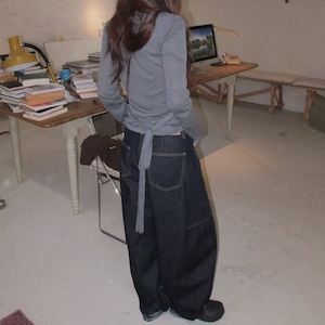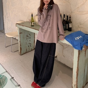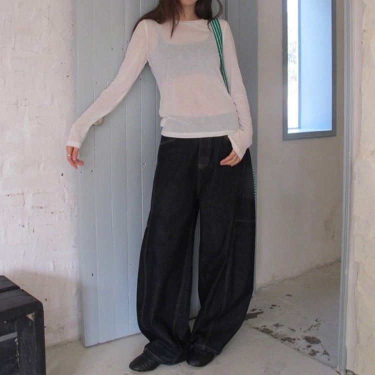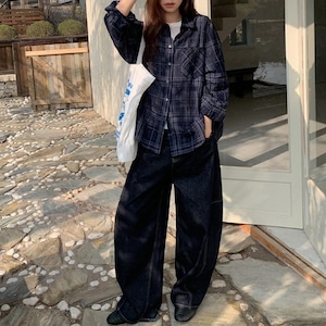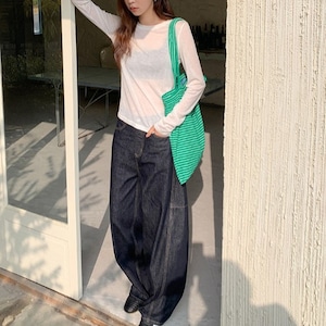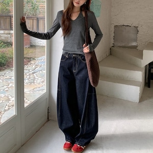トレンドのインディゴワイドカーブデニムパンツです。