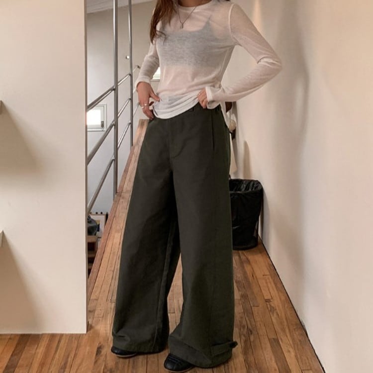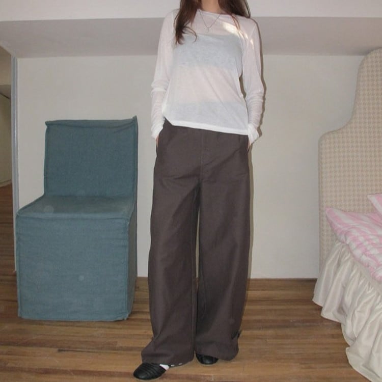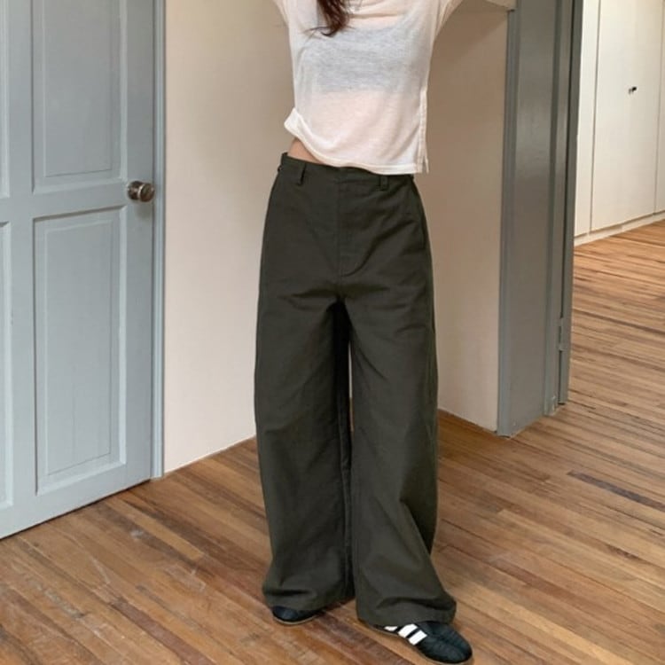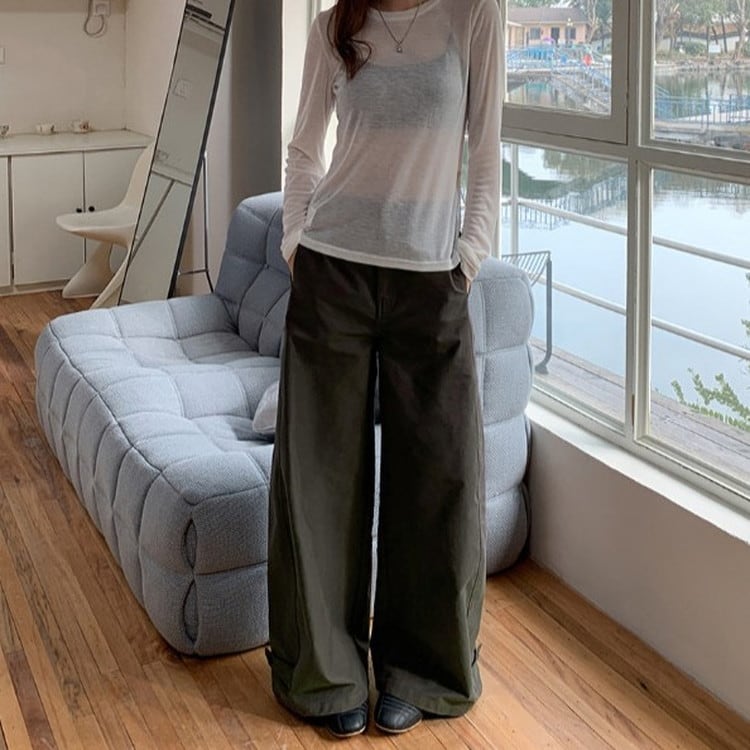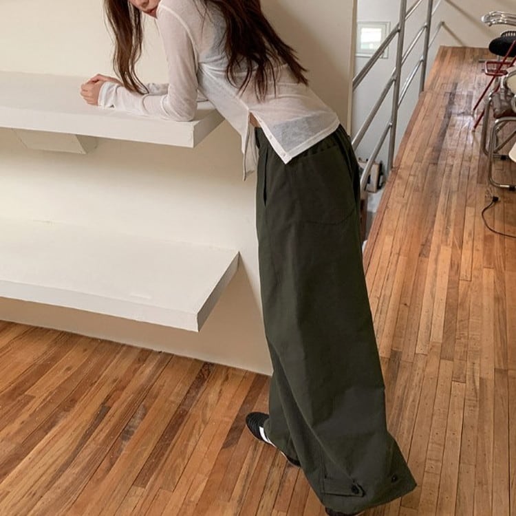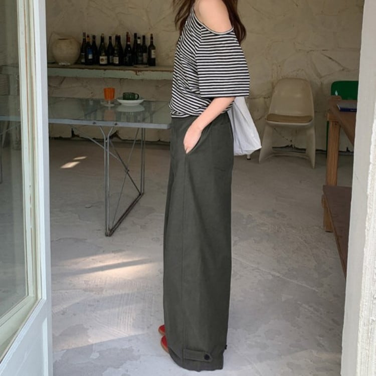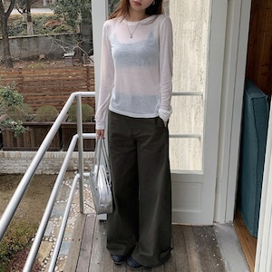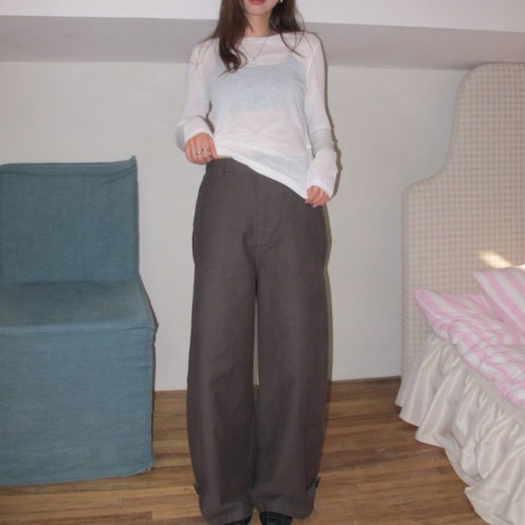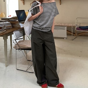 大人っぽさ漂うヘムボタンコットンワイドパンツです。
