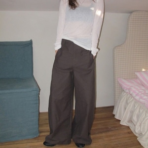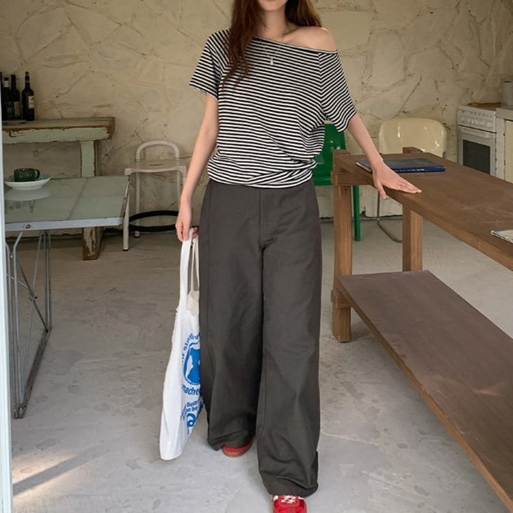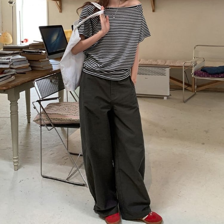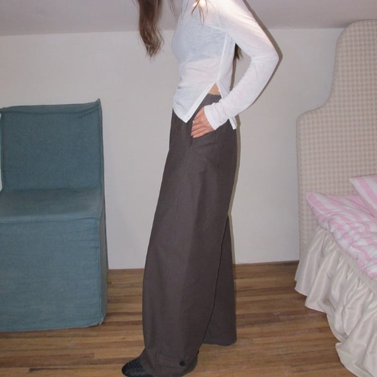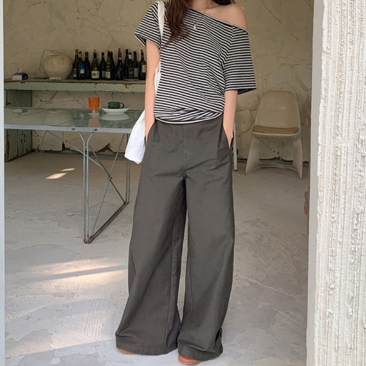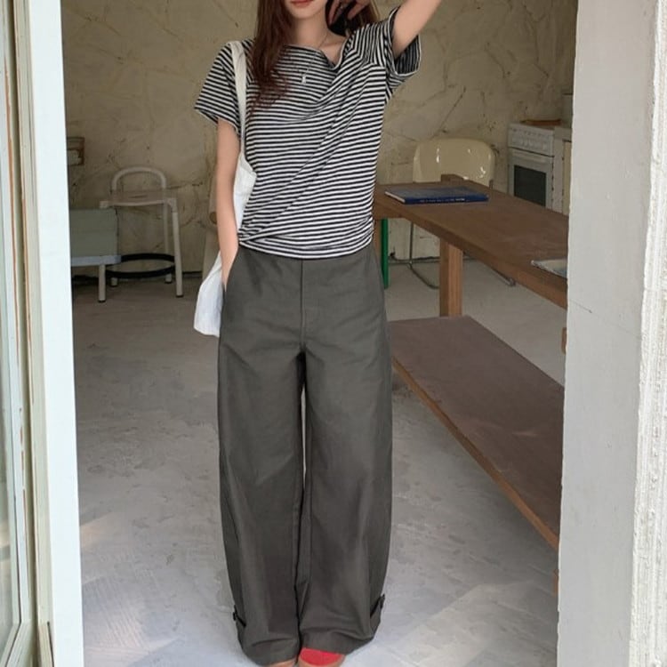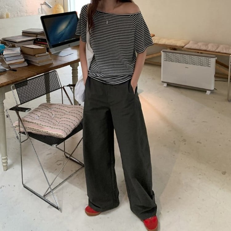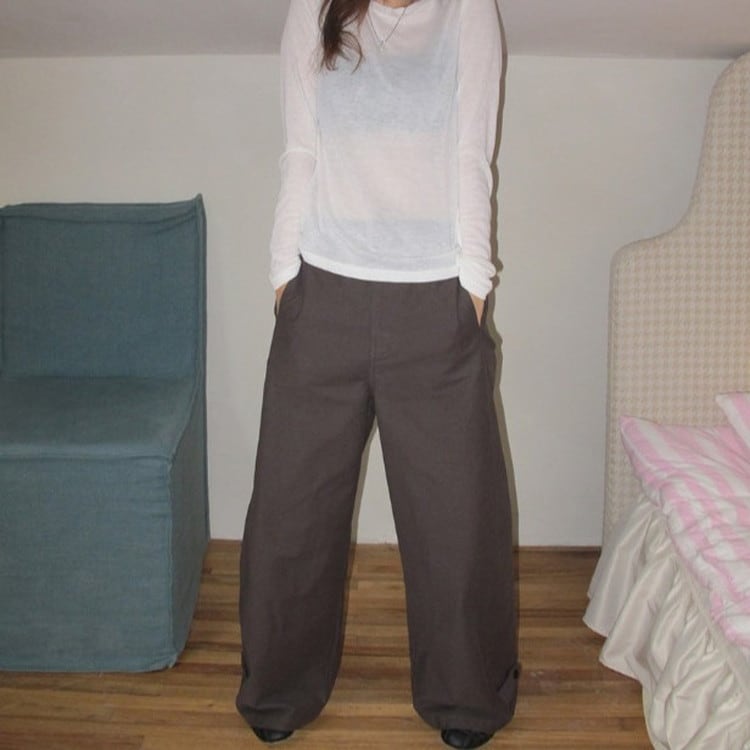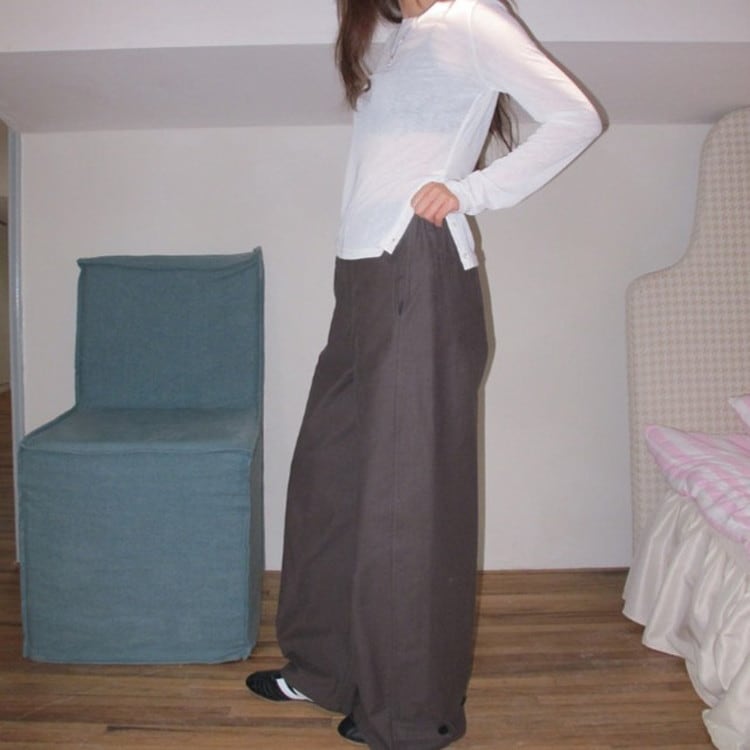 大人っぽさ漂うヘムボタンコットンワイドパンツです。