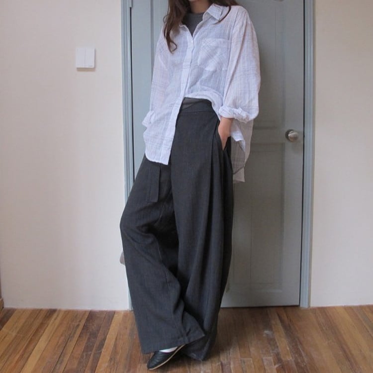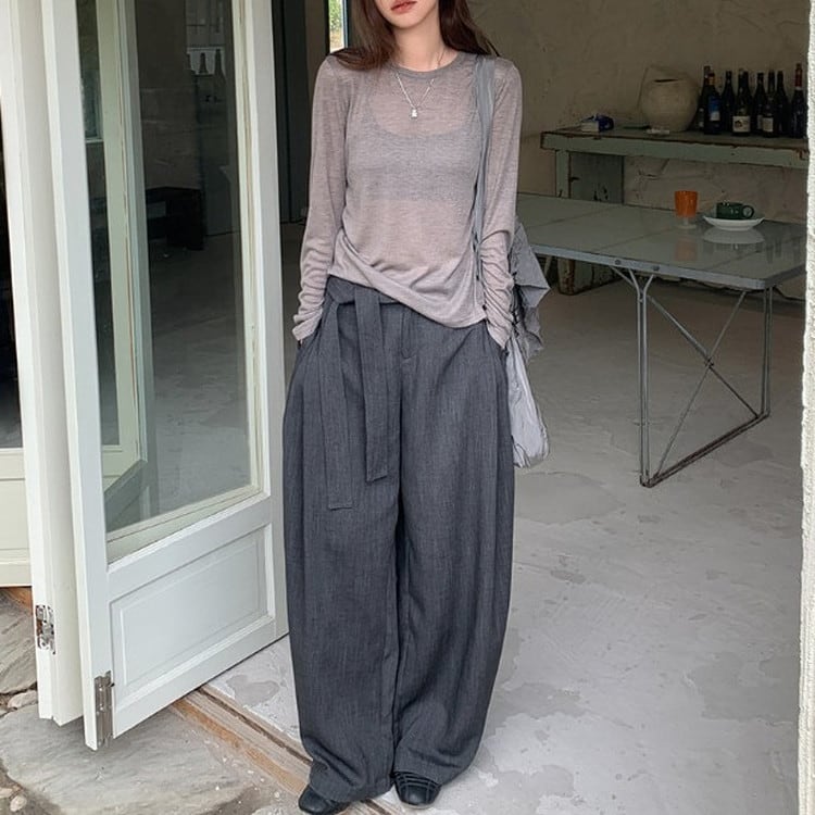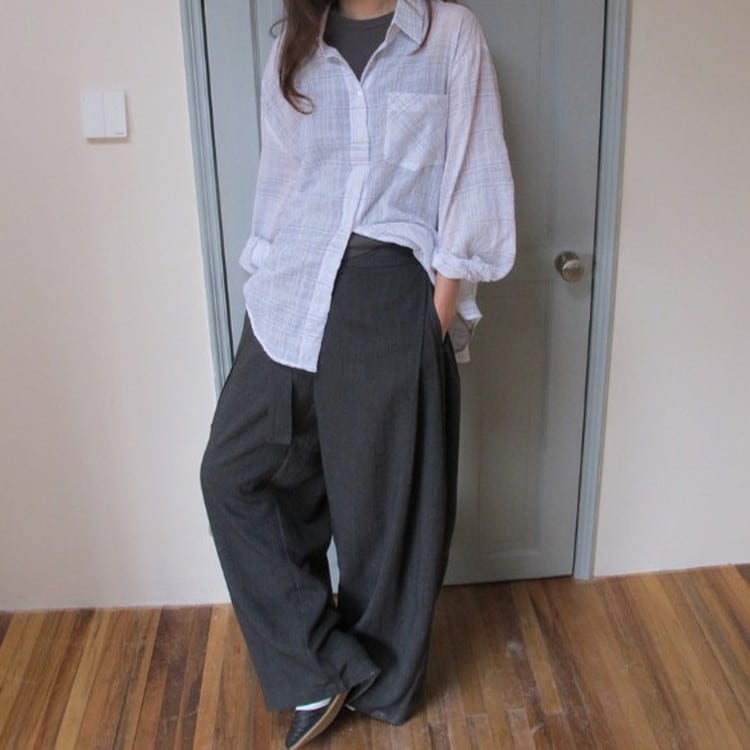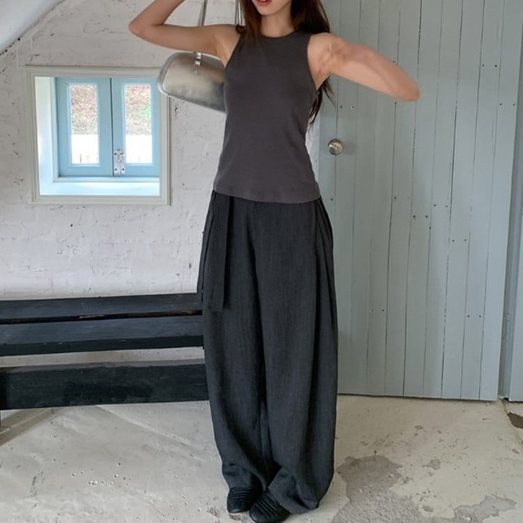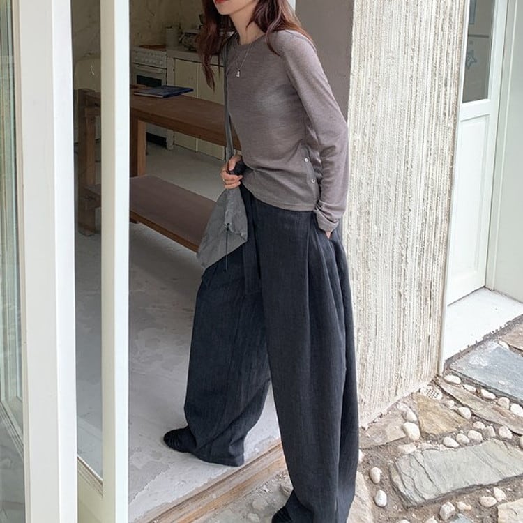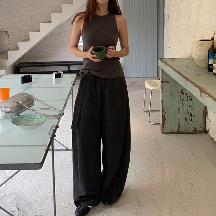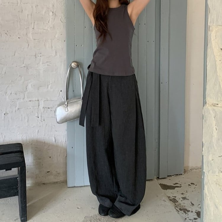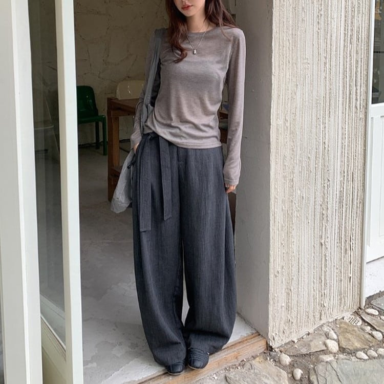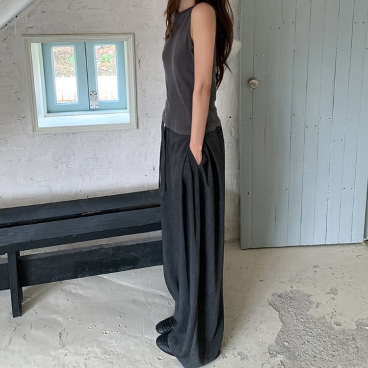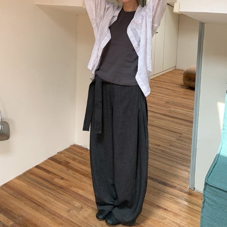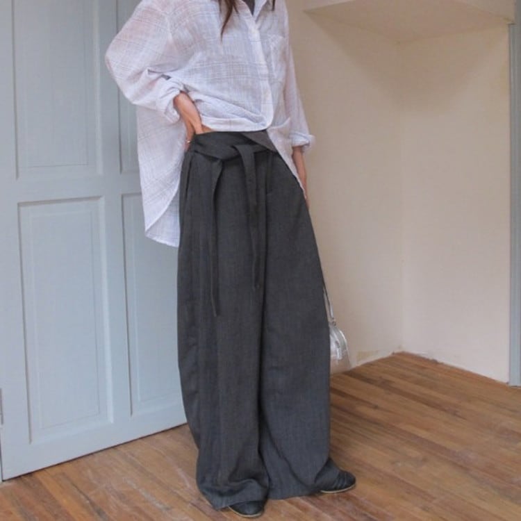 ウエストタイワイドドレープパンツ [am03683]
