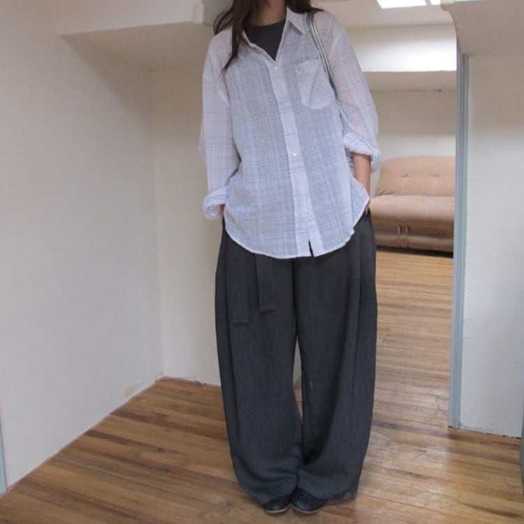 落ち感があるシルエットで、ウエストマークが上品な大人の印象に◎