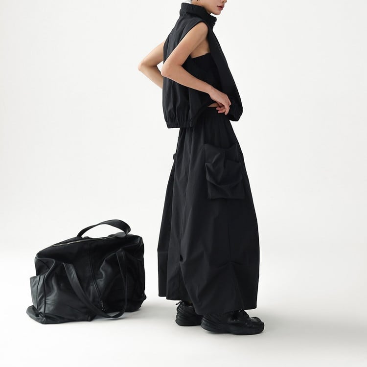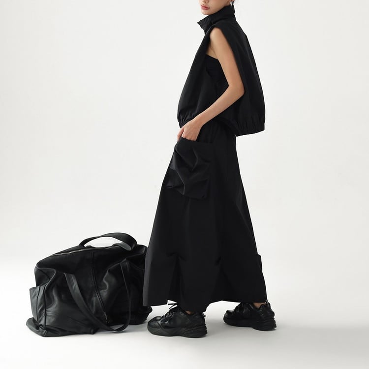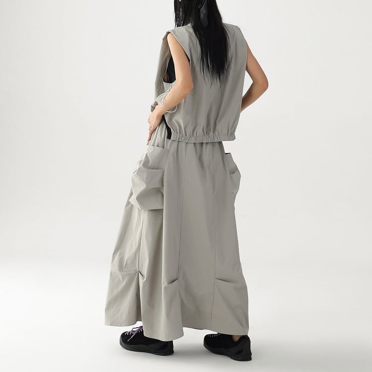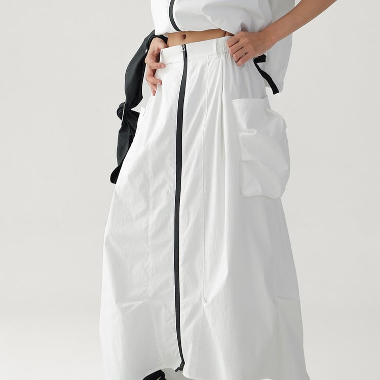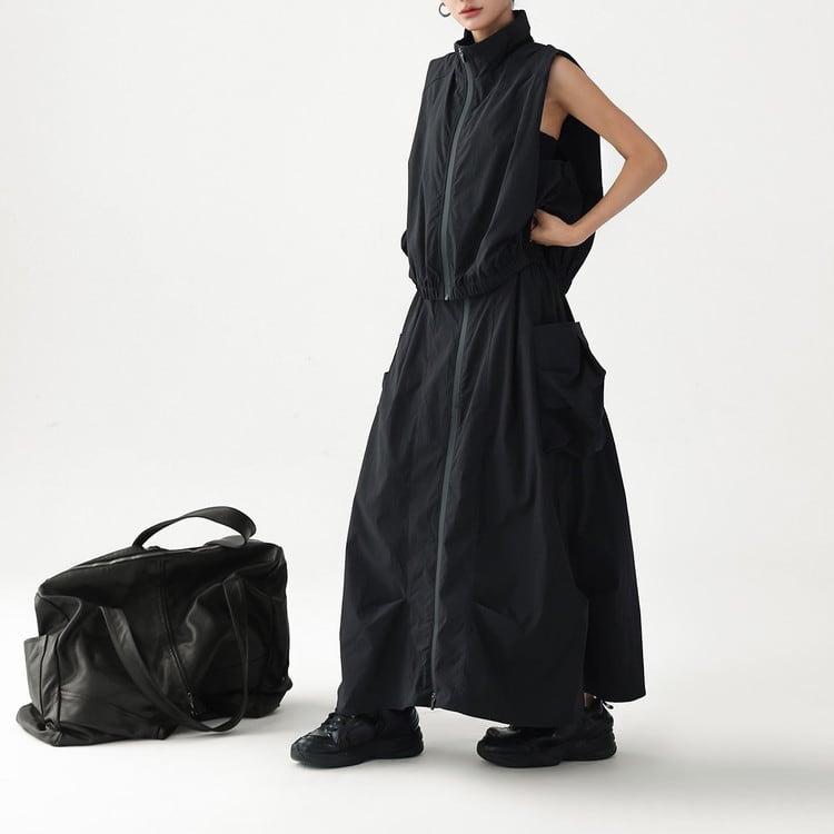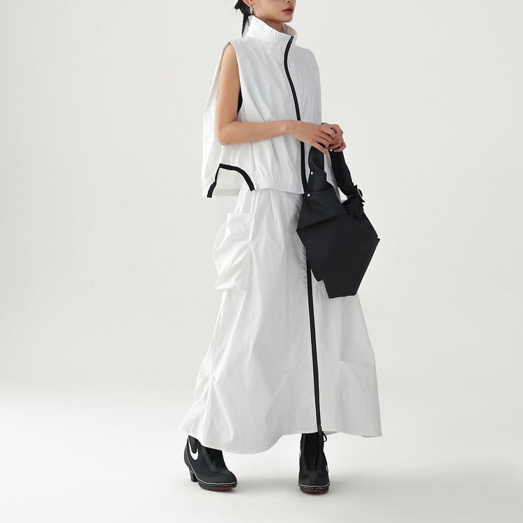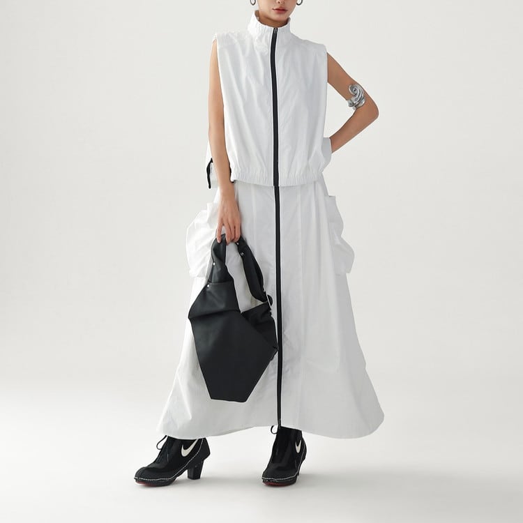 おしゃれ度アップすること間違いなしのジップアップベストスカートセットアップです。