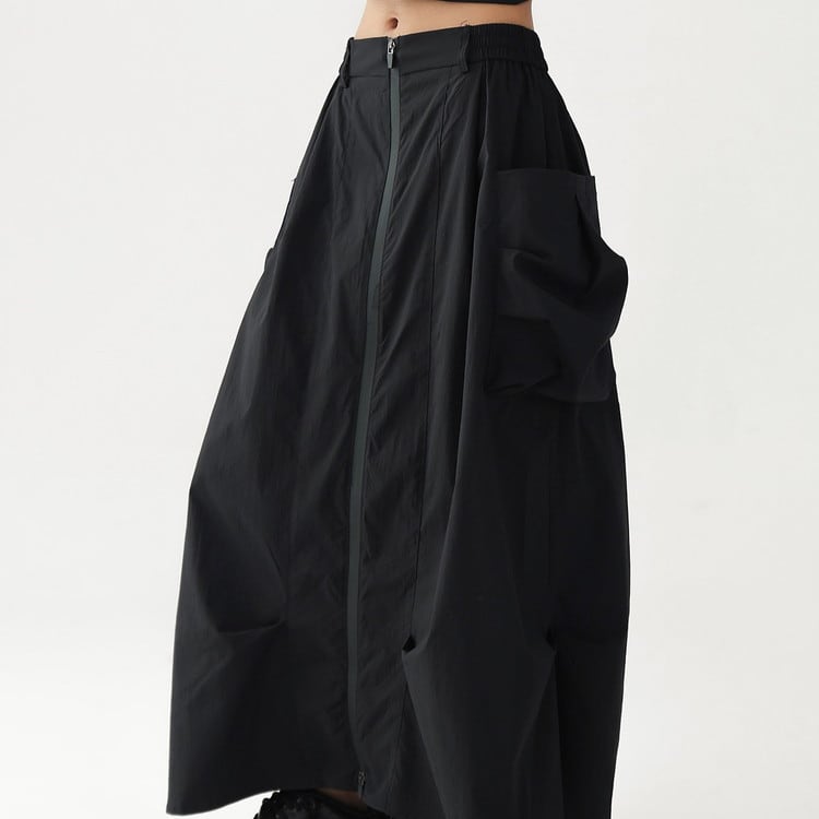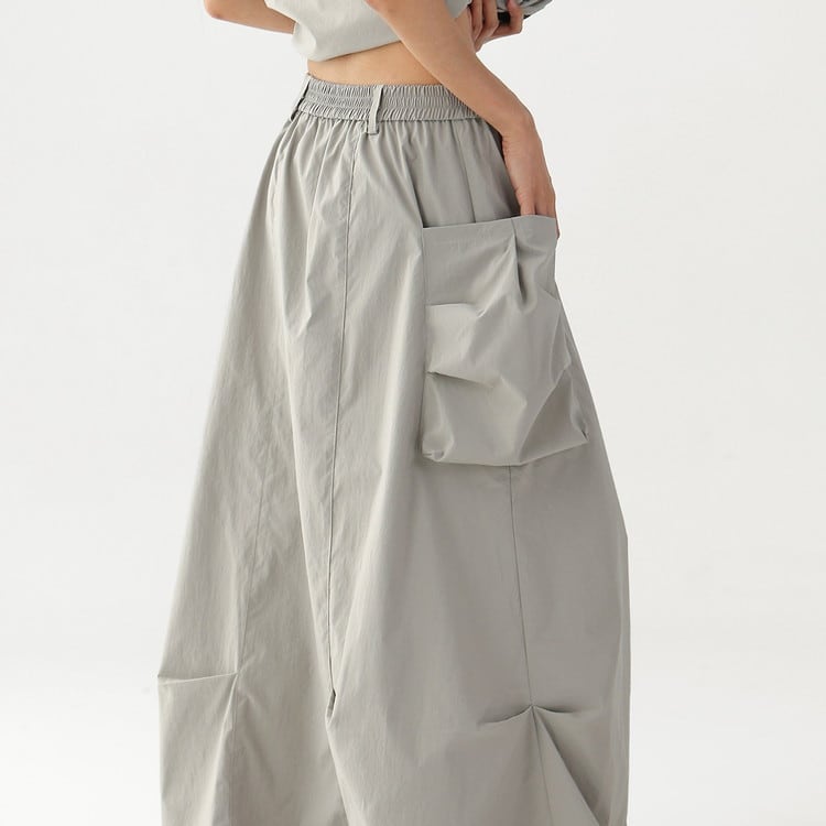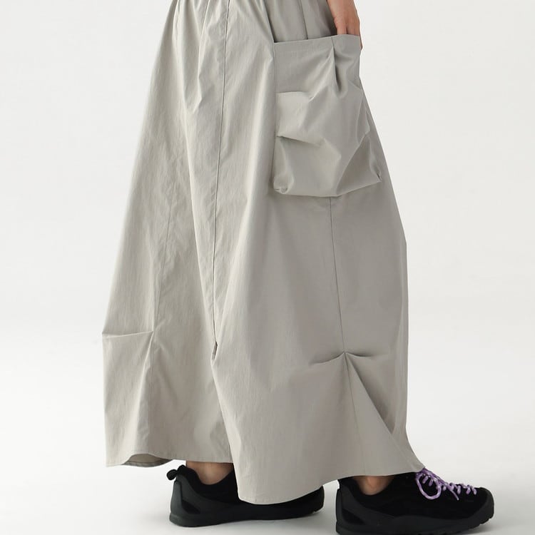 スカートはサイドの大きいポケットと裾のタックデザインが魅力的◎
