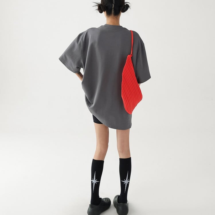 ゆったりとしたシルエットとヒップが隠れる着丈で体型カバーも◎
