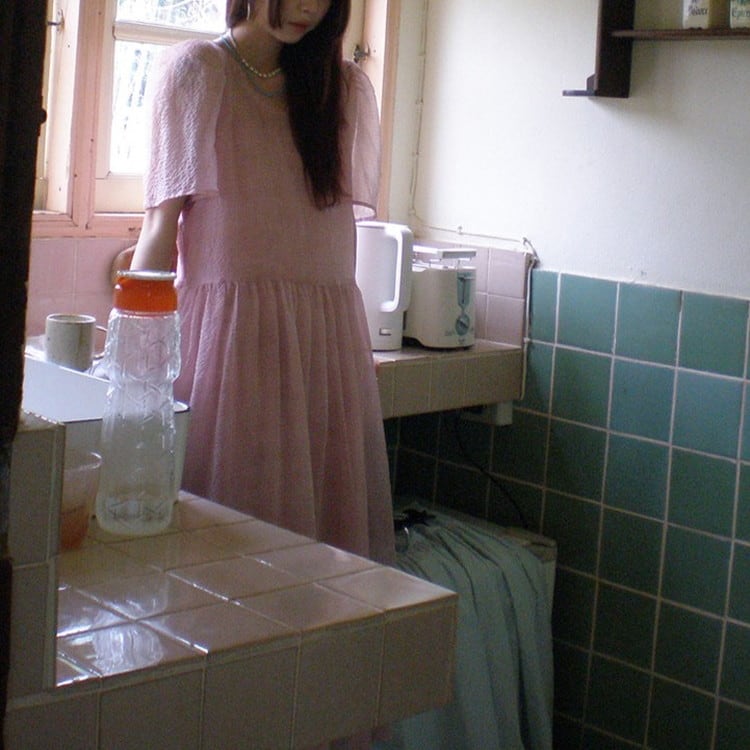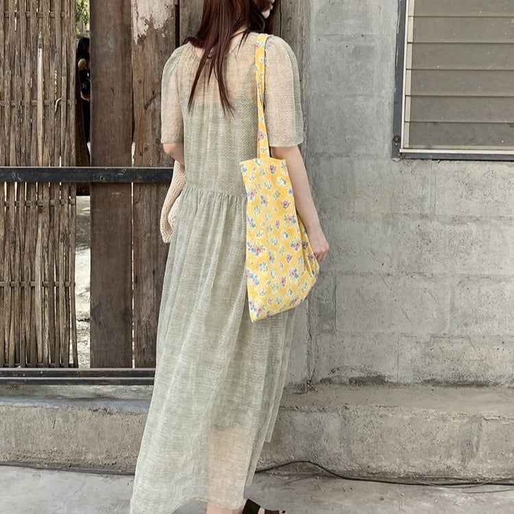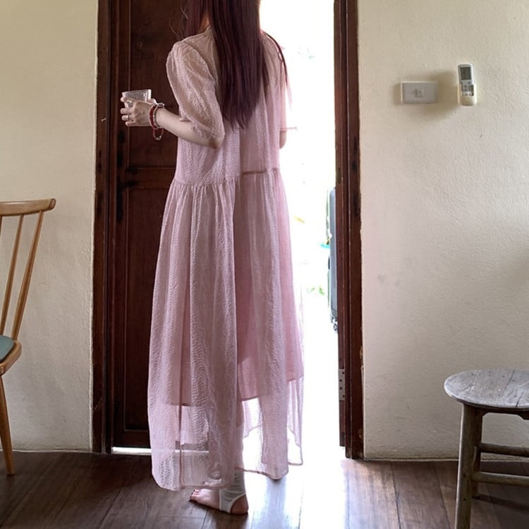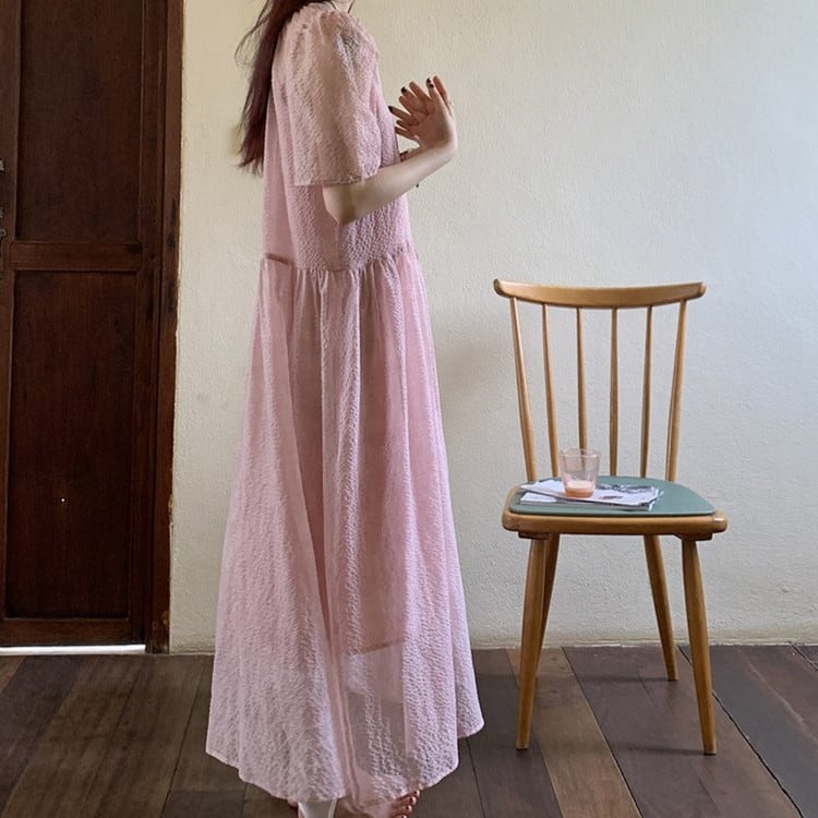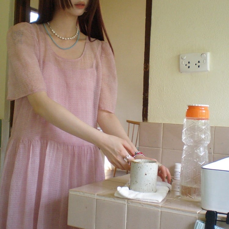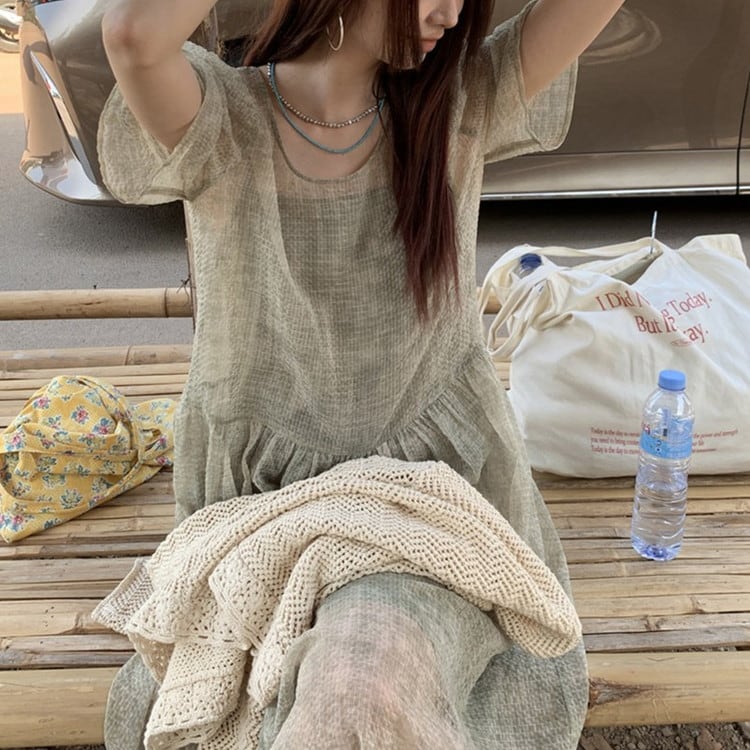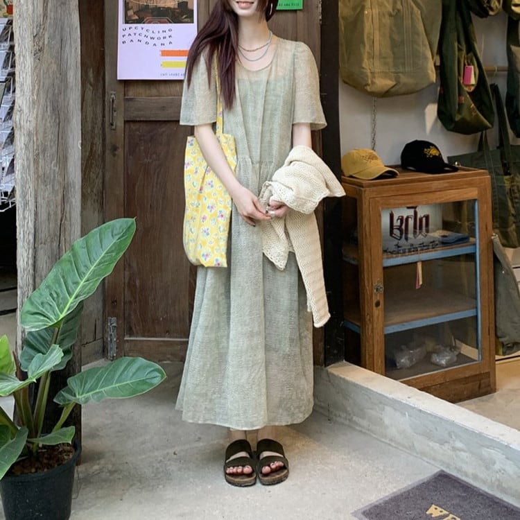 パフスリーブワンピースレイヤードセット 2color [am03692]