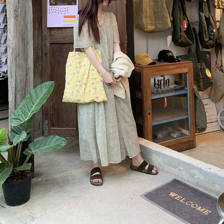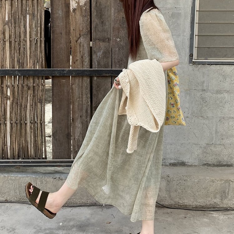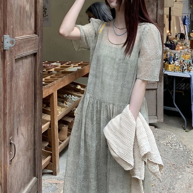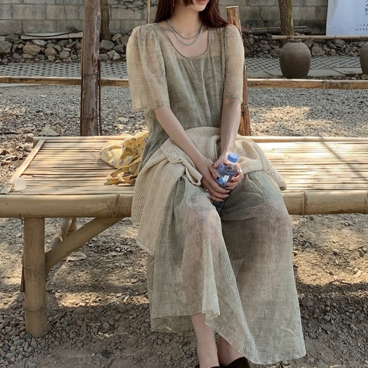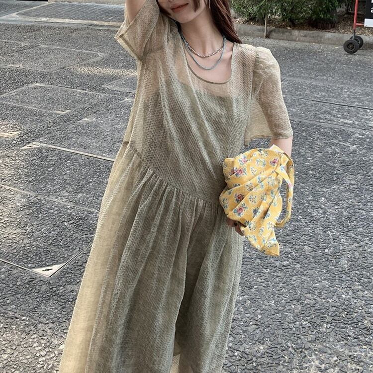 大人フェミニンなパフスリーブワンピースレイヤードセットです。