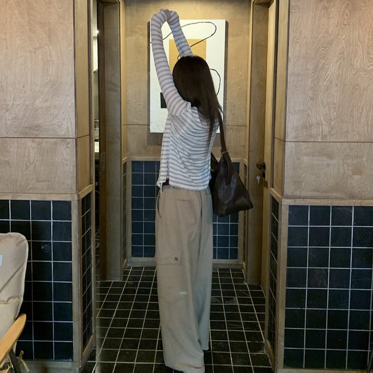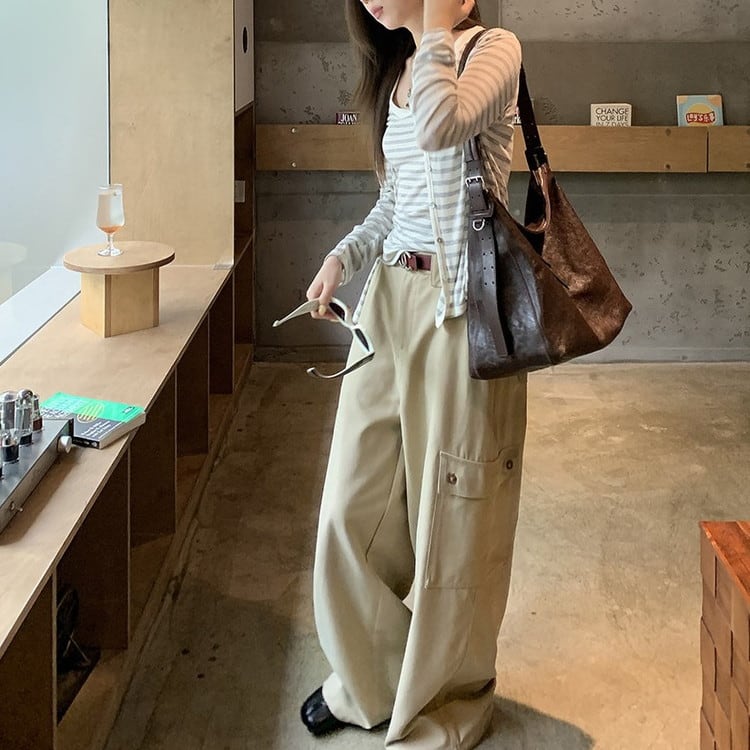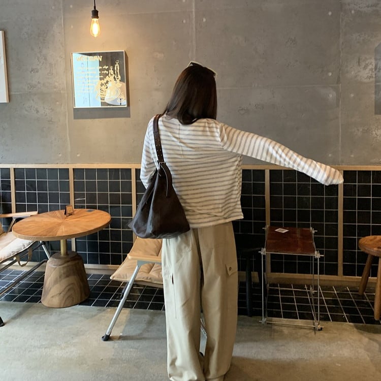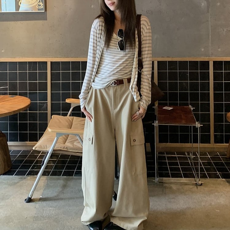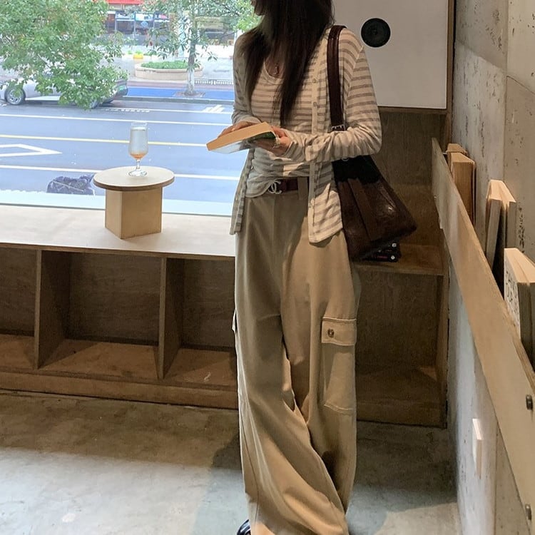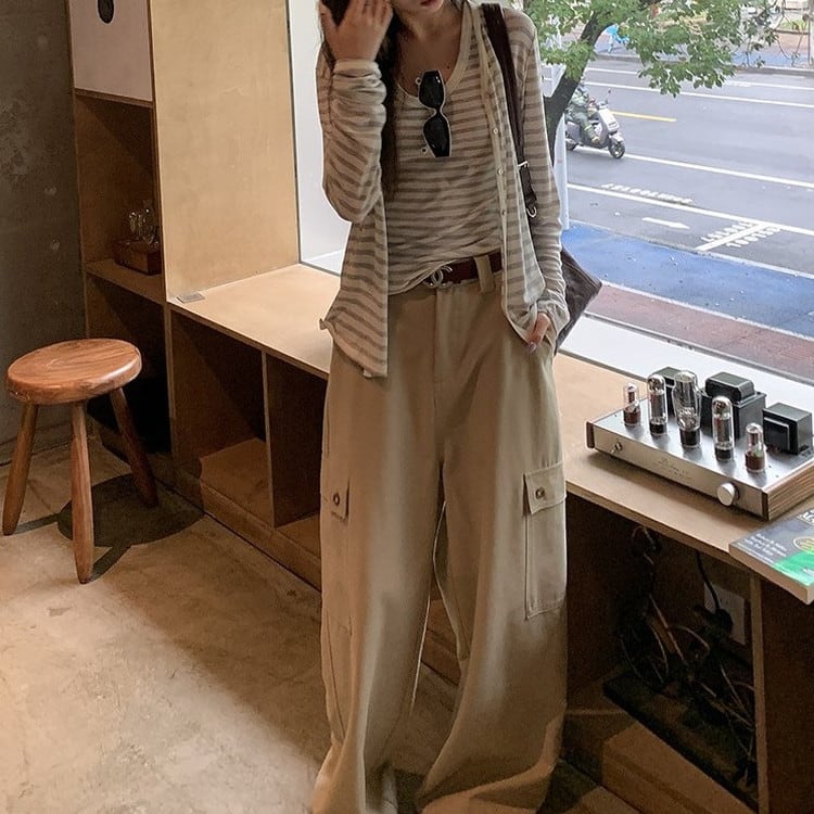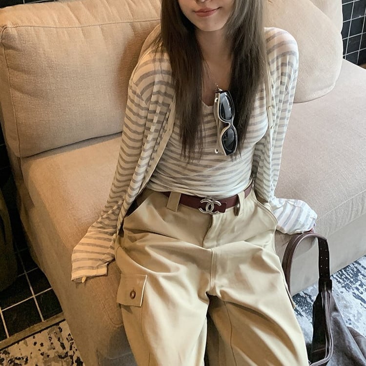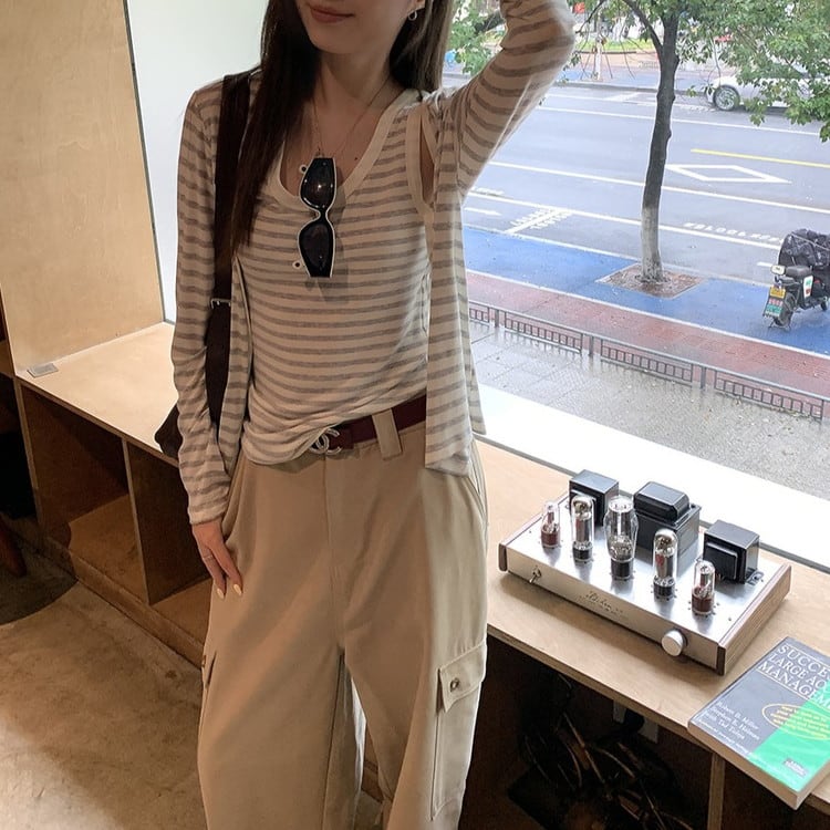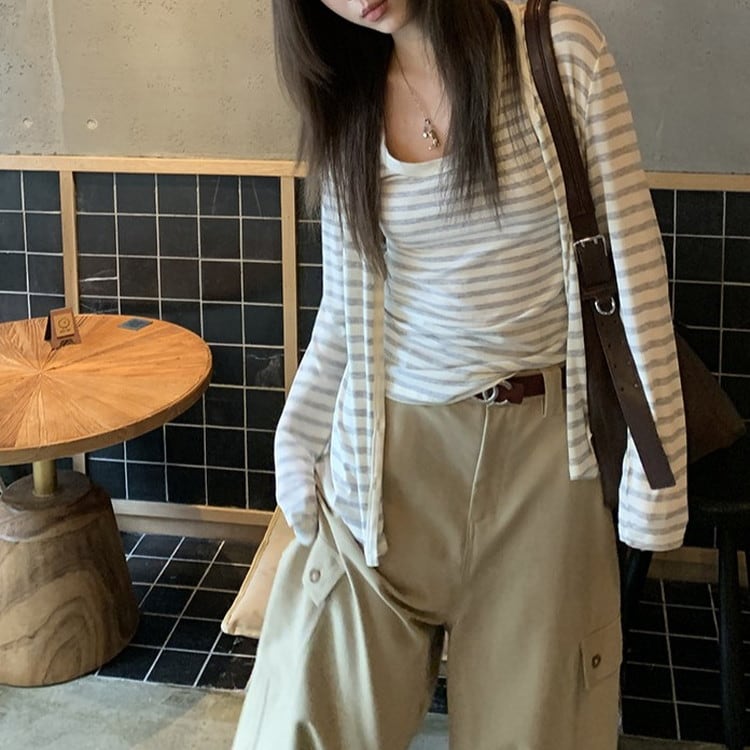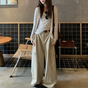 リラックス感のあるVネックボーダーカーディガンです。