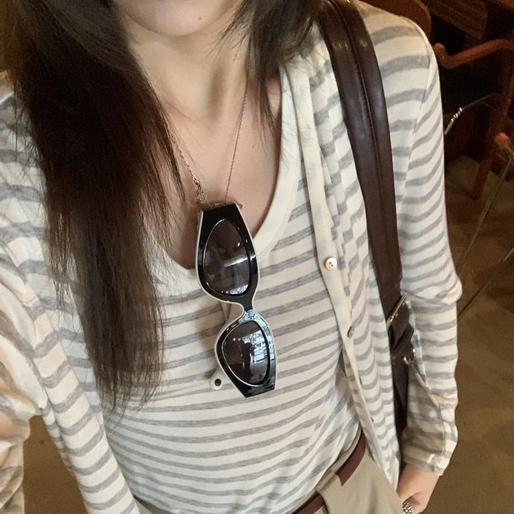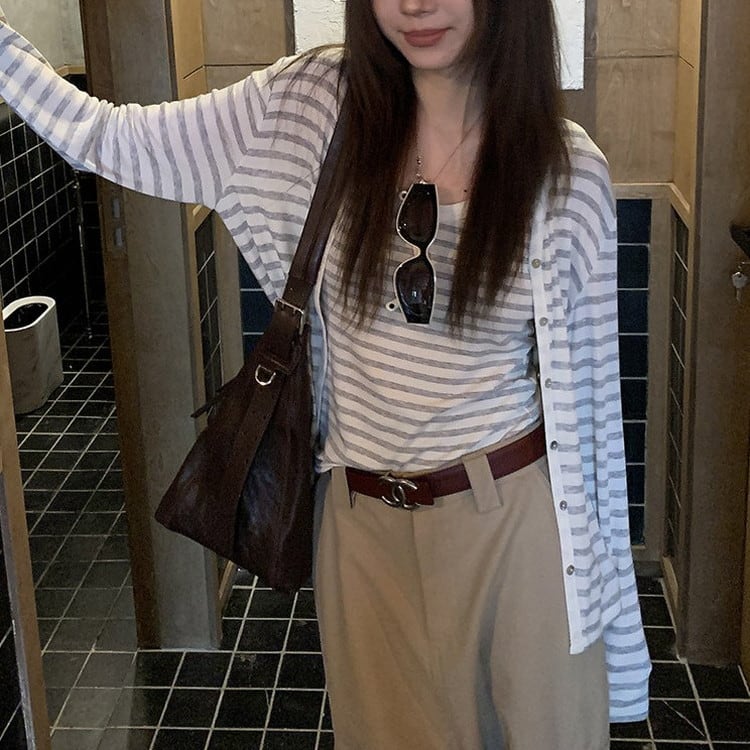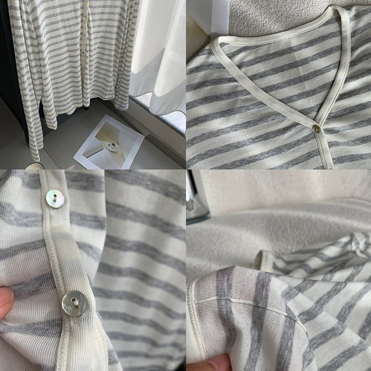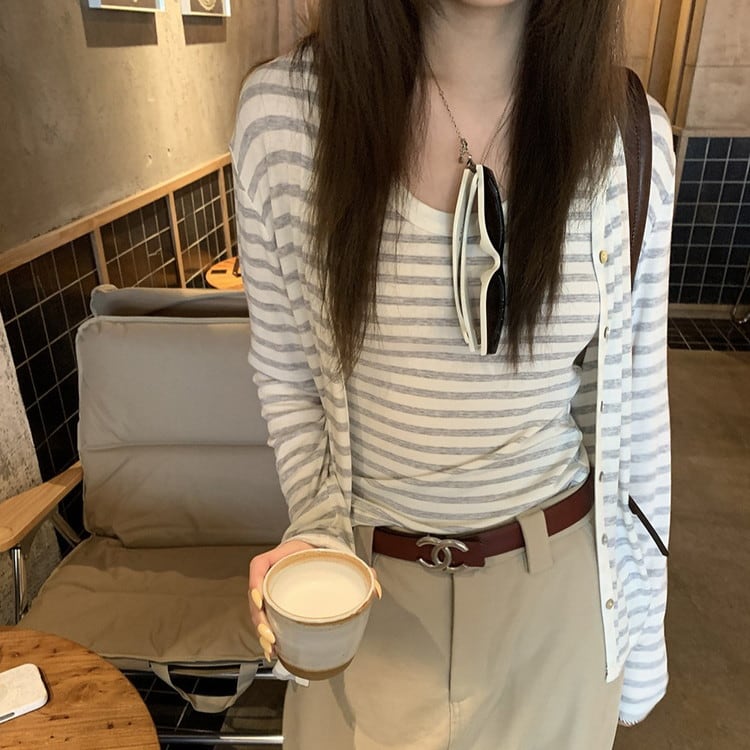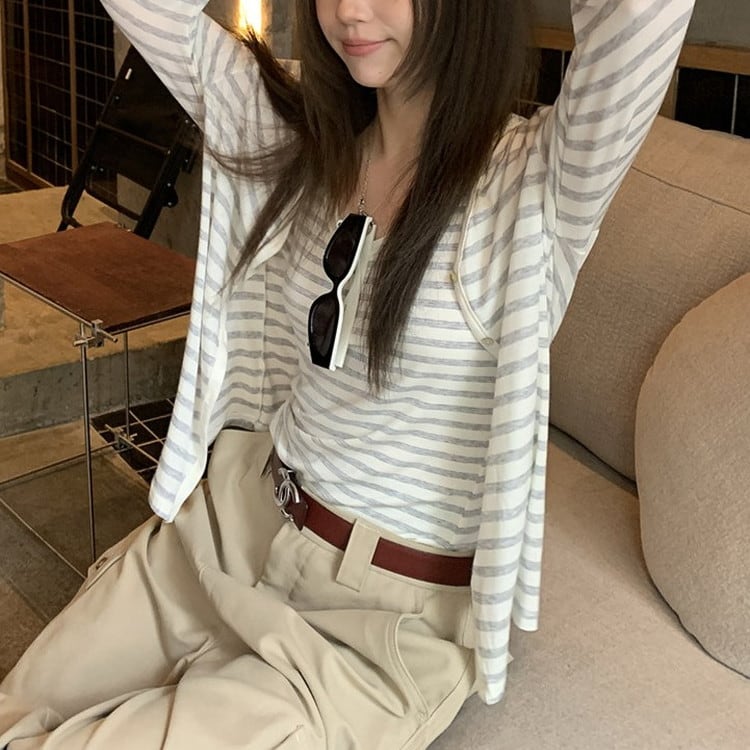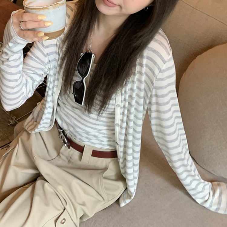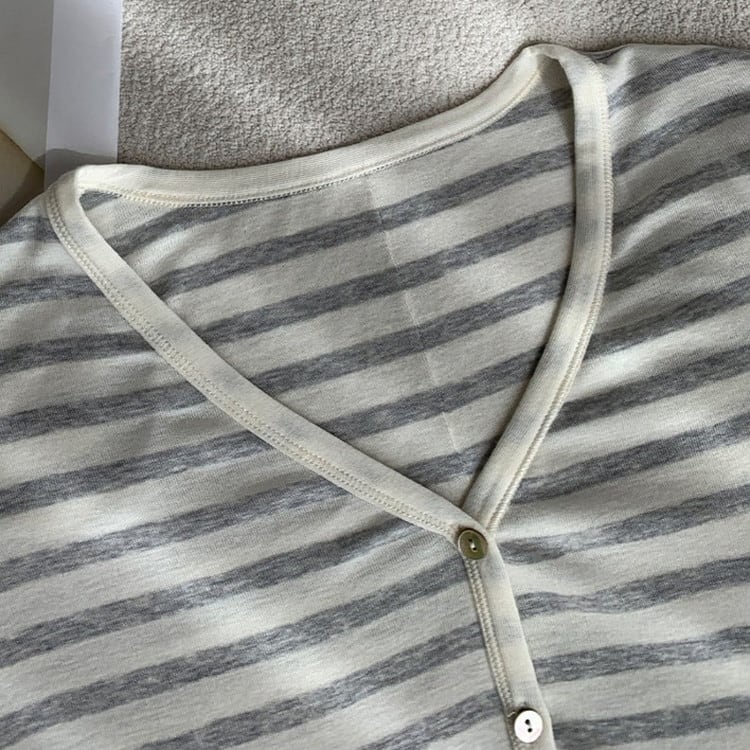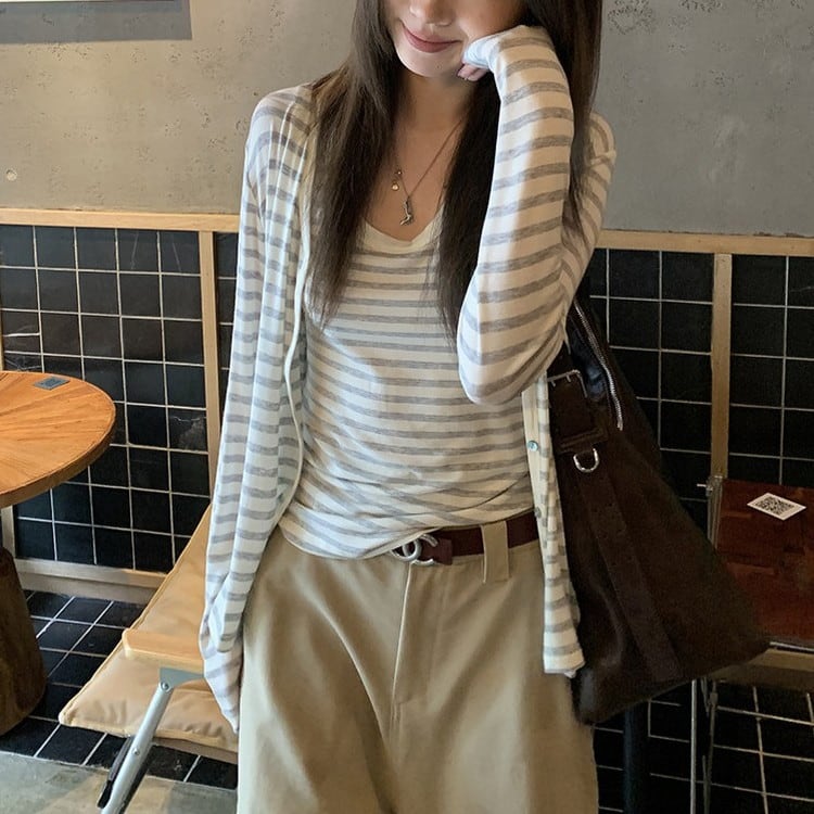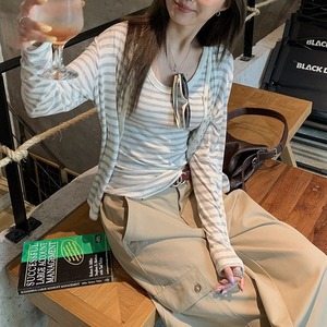 Vネックボーダーカーディガン [am03694]
