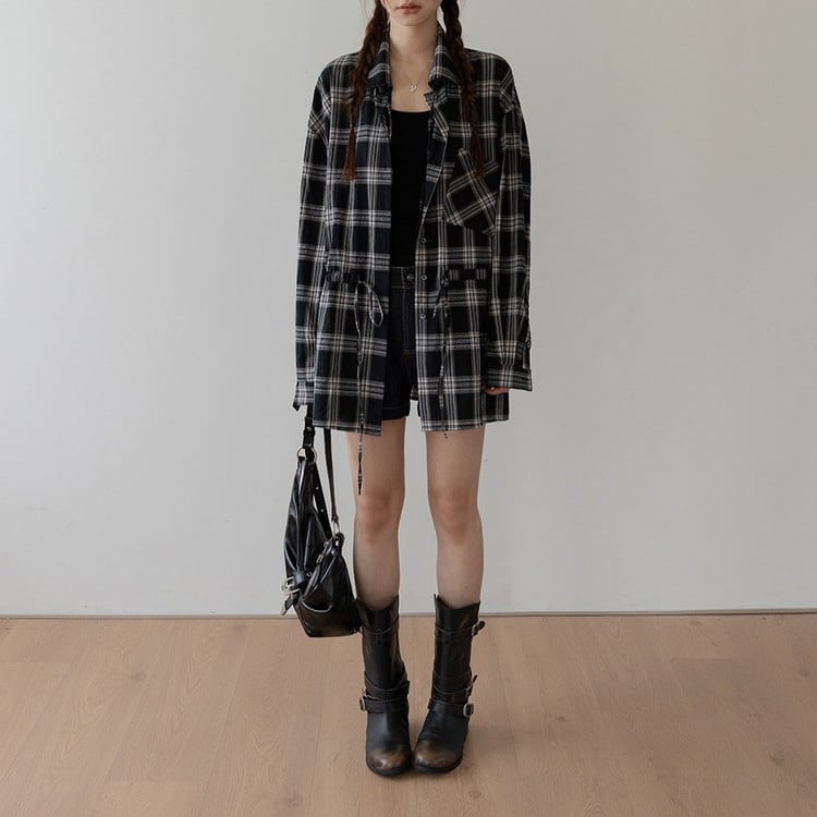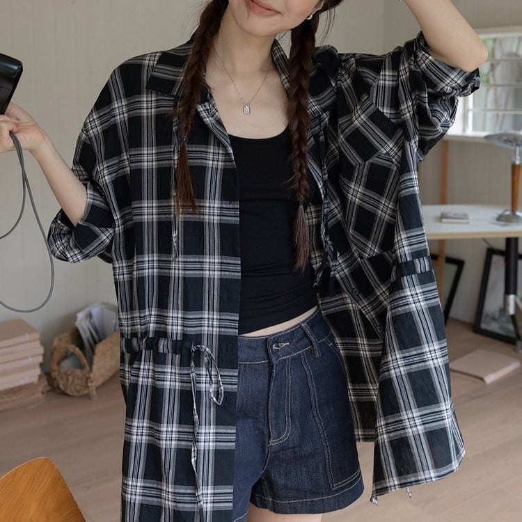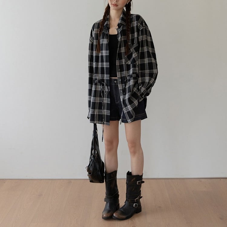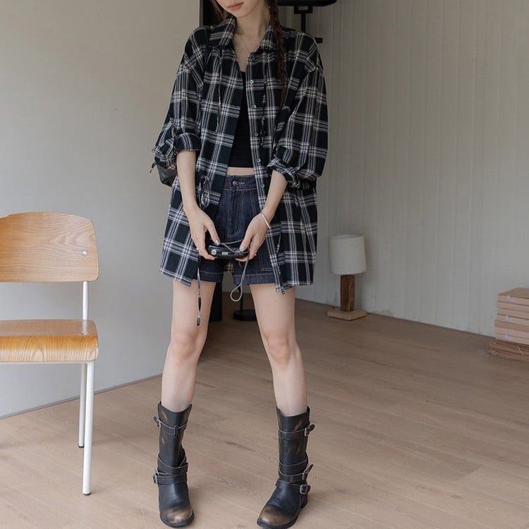 オーバーサイズドロストチェックシャツ 2color [am03703]