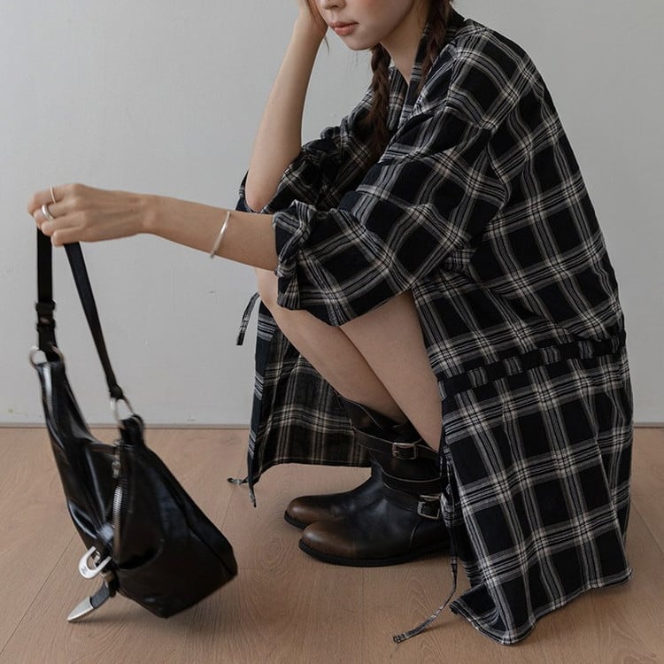 洗練された印象のオーバーサイズドロストチェックシャツです。