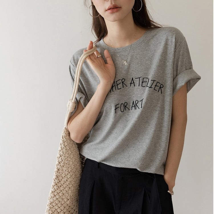 テンセルリネン刺繍ロゴTee 3color [am03713]