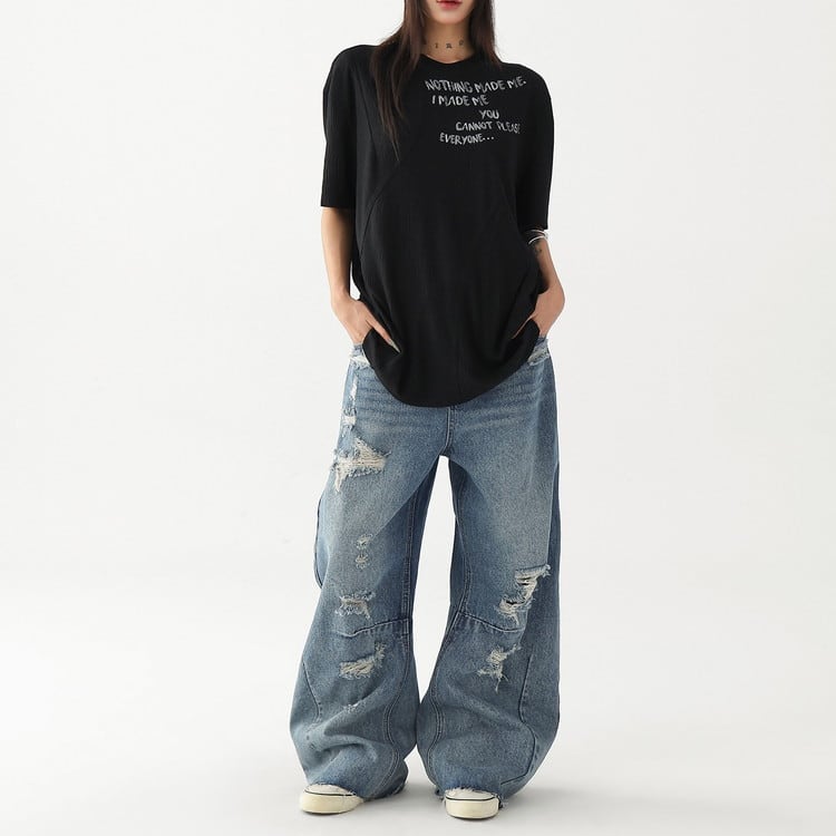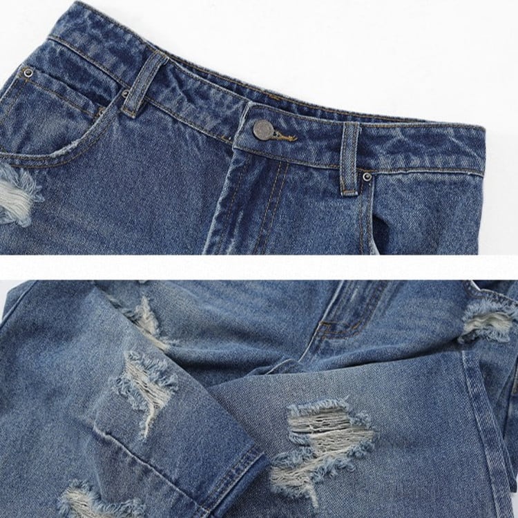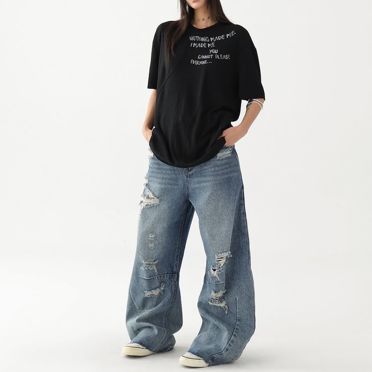 ヴィンテージライクなダメージワイドデニムパンツです。