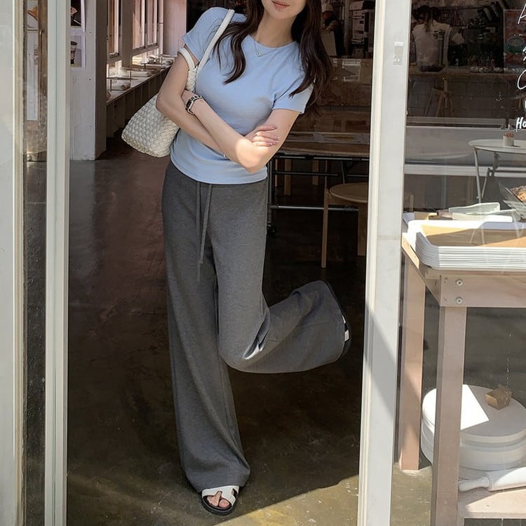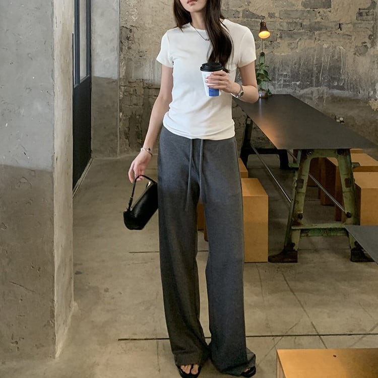 ストレートソフトイージーパンツ 2color [am03727]