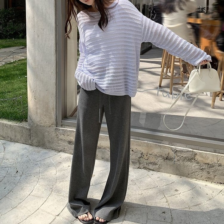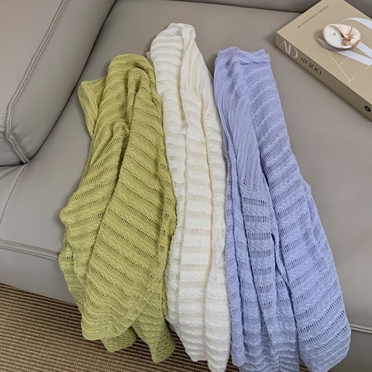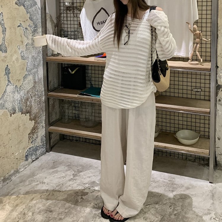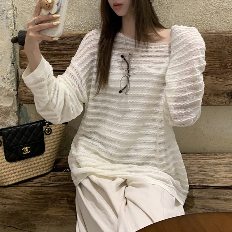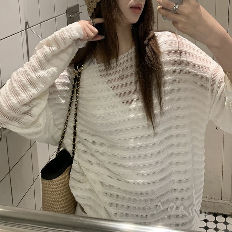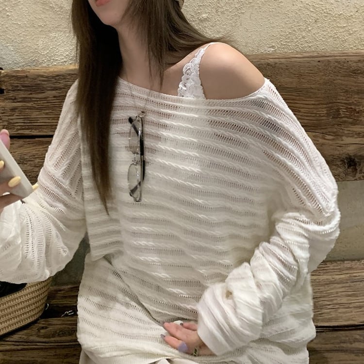 透かし編みドロップショルダーニット 3color [am03728]
