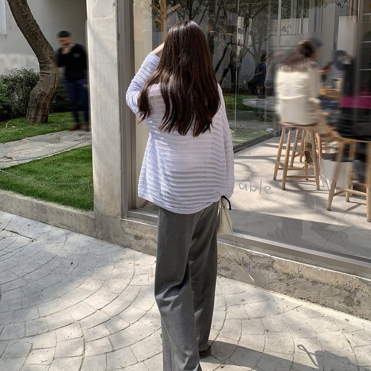 長めの袖と程よい透け感が女性らしさを演出◎