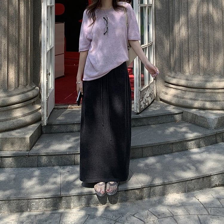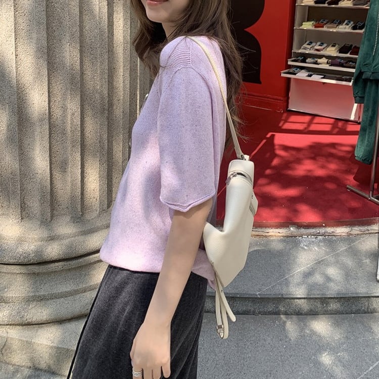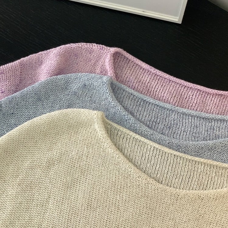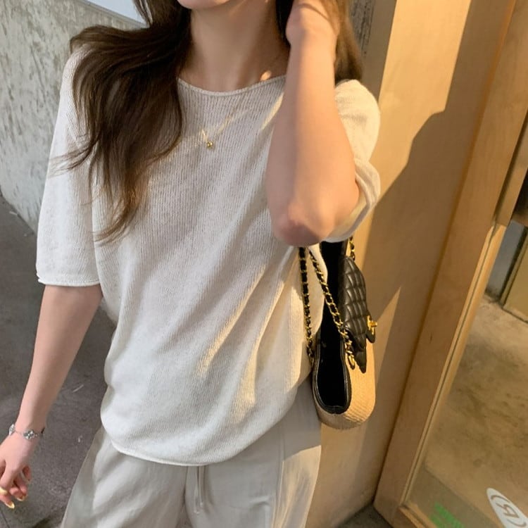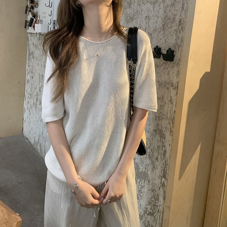ペーパーヤーンリネンハーフスリーブニット 3color [am03731]