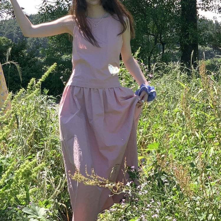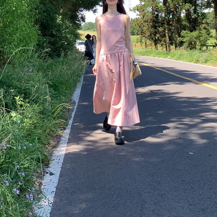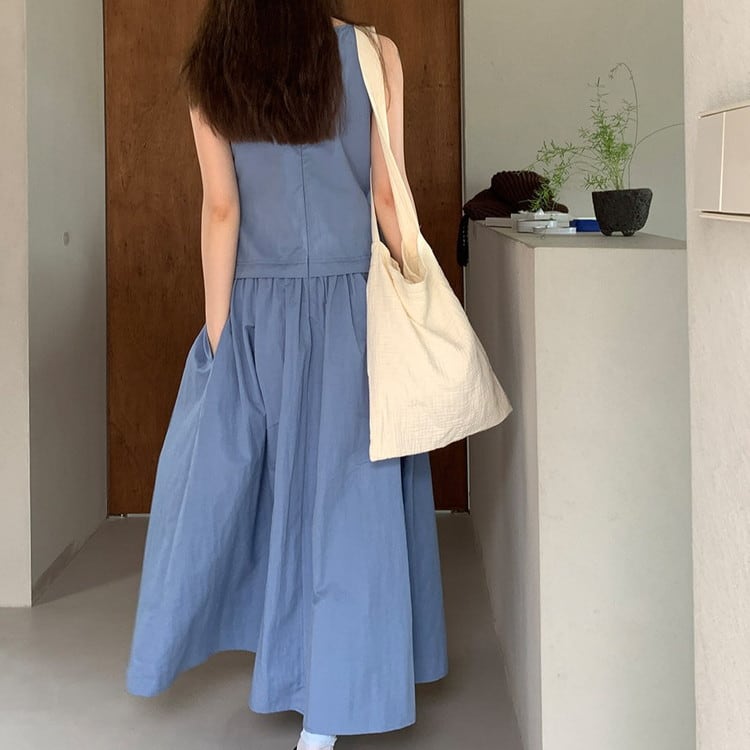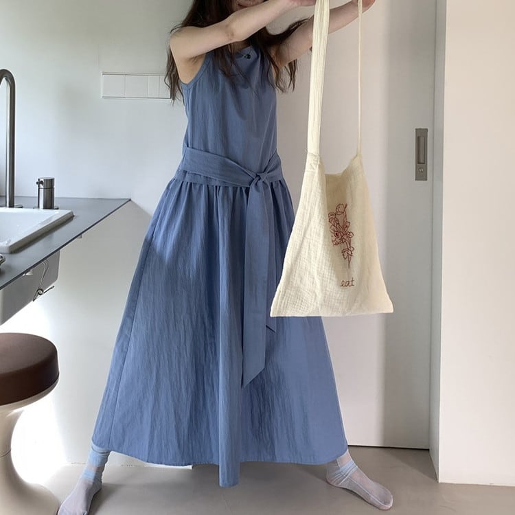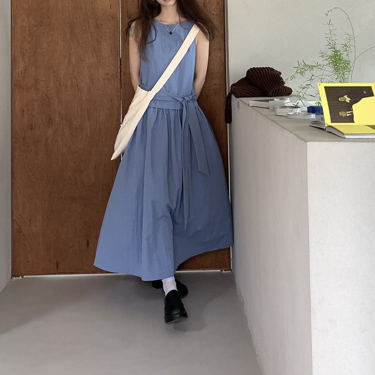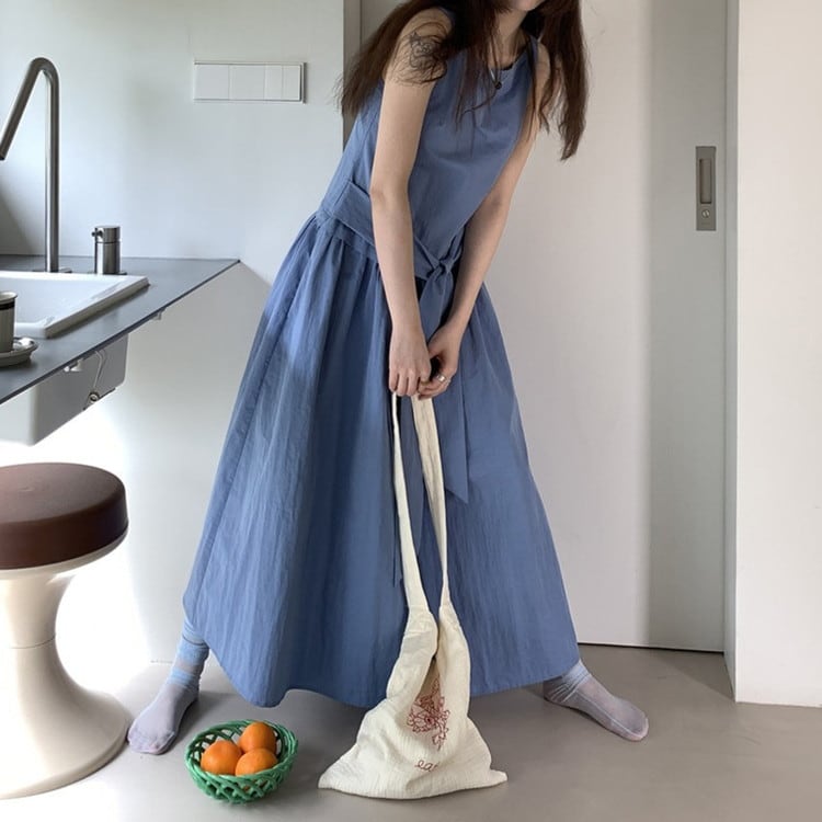 ウエストタイノースリーブワンピース 2color [am03736]
