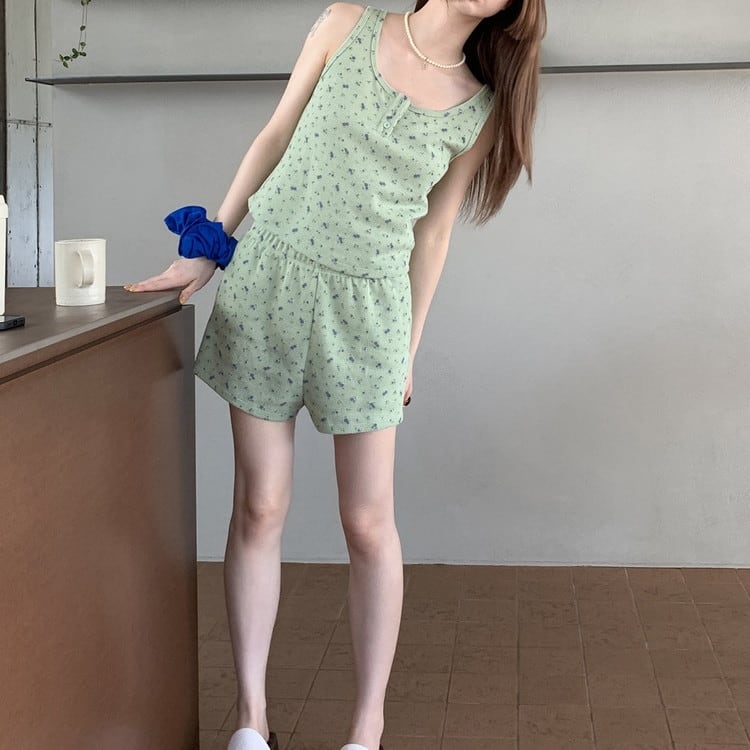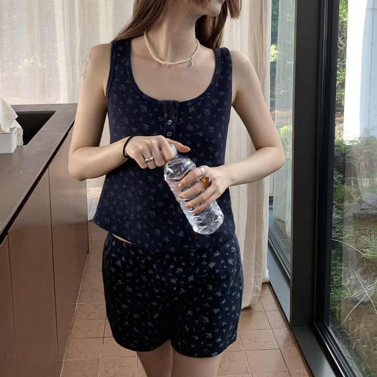 ワッフルタンクショートパンツセットアップ 3color [am03743]