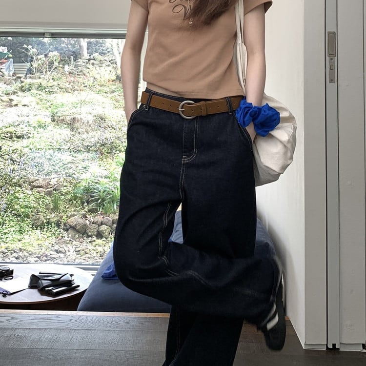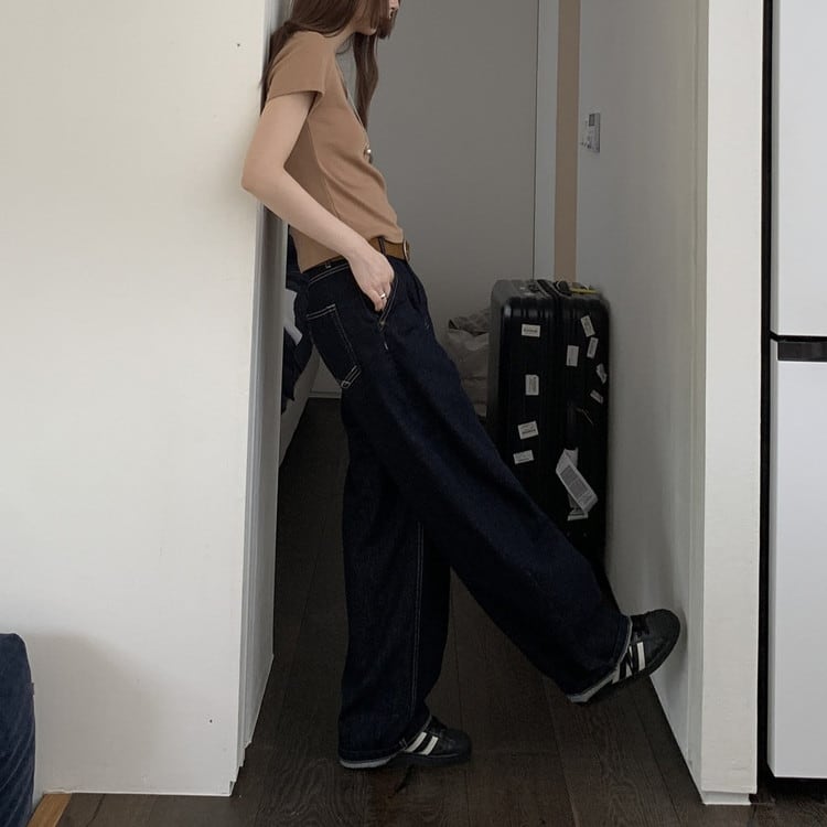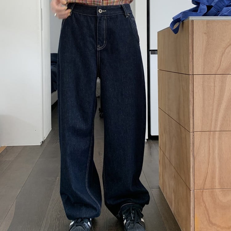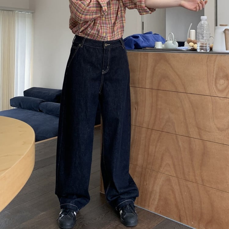 ステッチデザインが魅力的なインディゴワイドデニムパンツです。