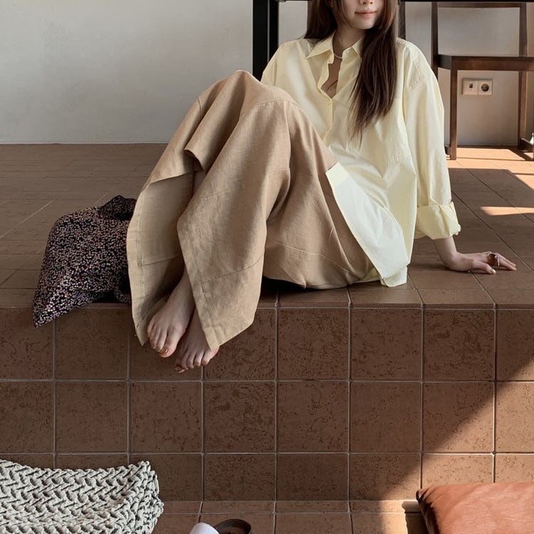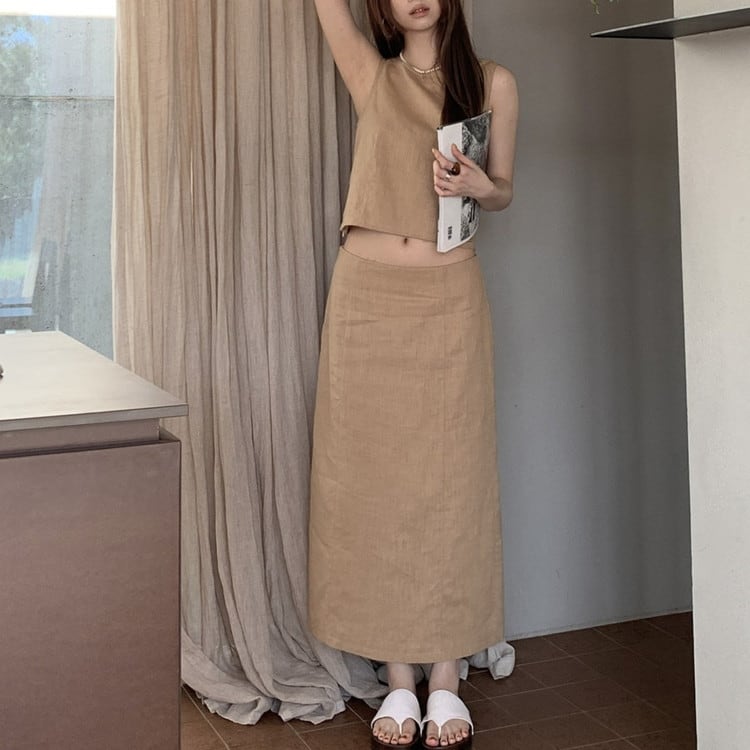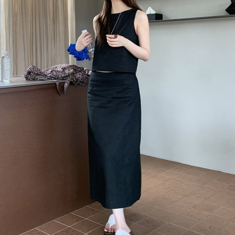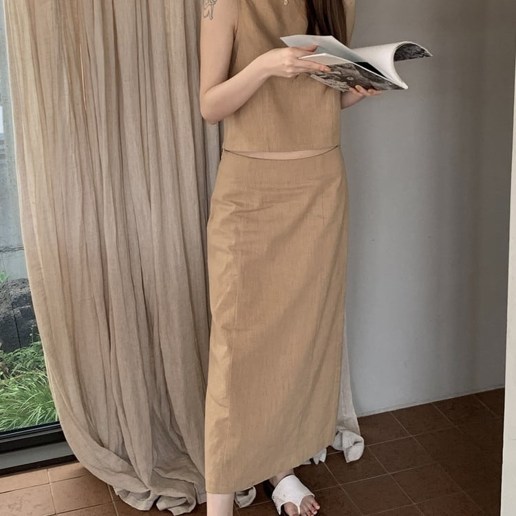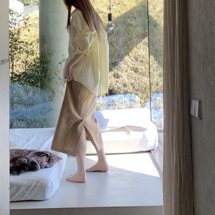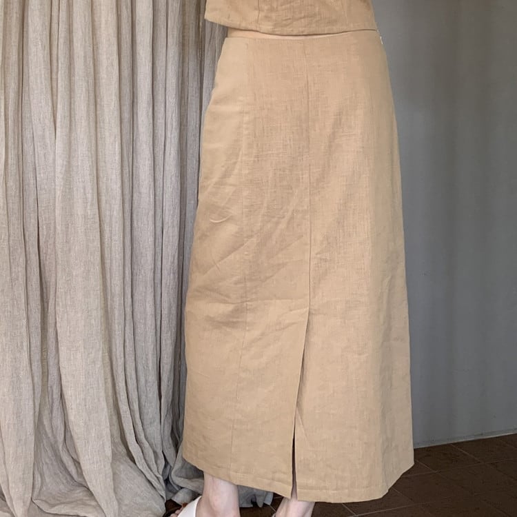 女性らしいラミーコットンスリットロングスカートです。