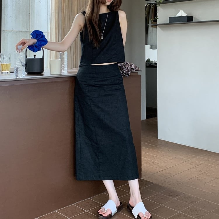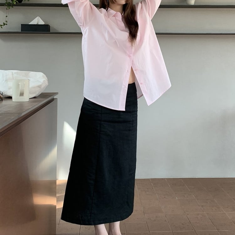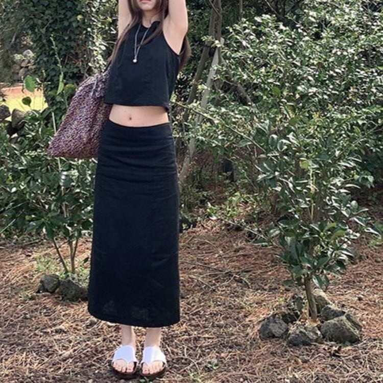 ラミーコットンスリットロングスカート 2color [am03754]