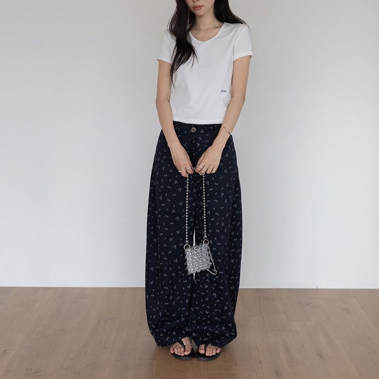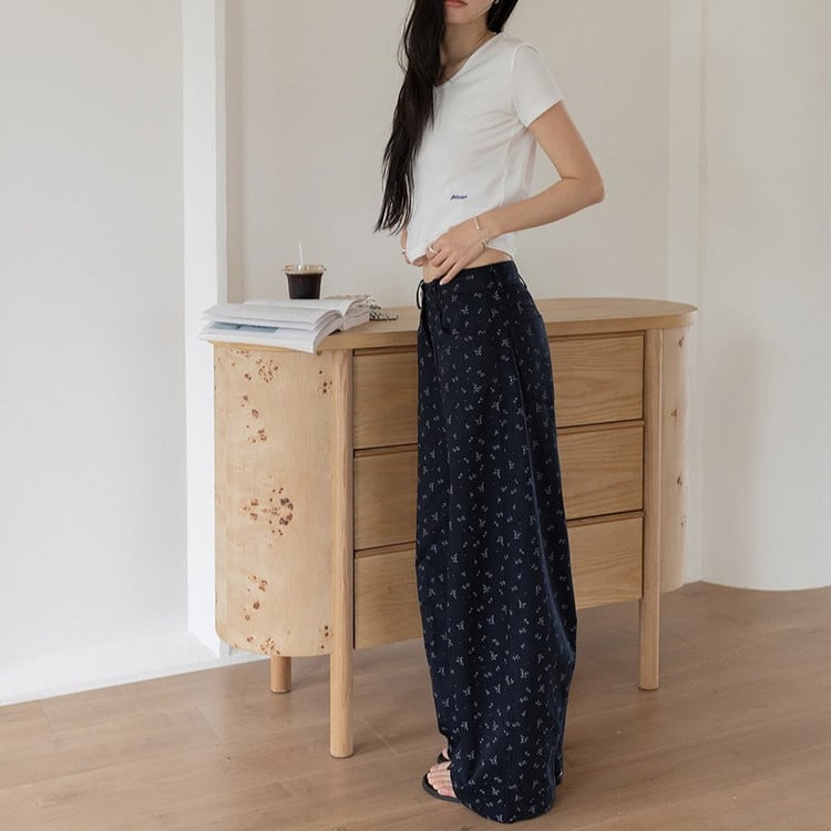 テンセル総柄ワイドパンツ 2color [am03758]