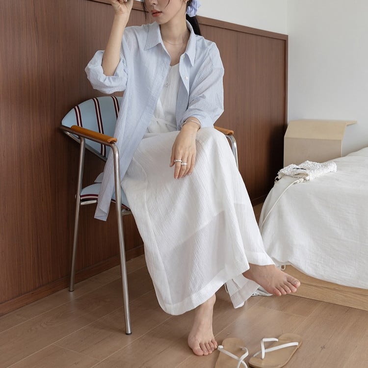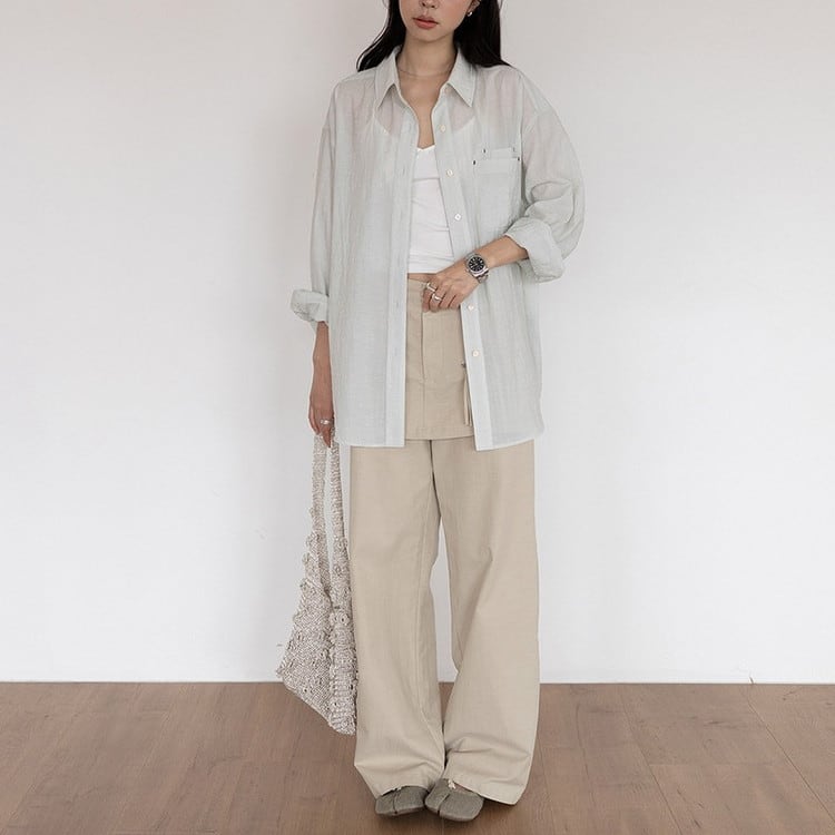 爽やかなオーバーサイズテンセルシアーシャツです。