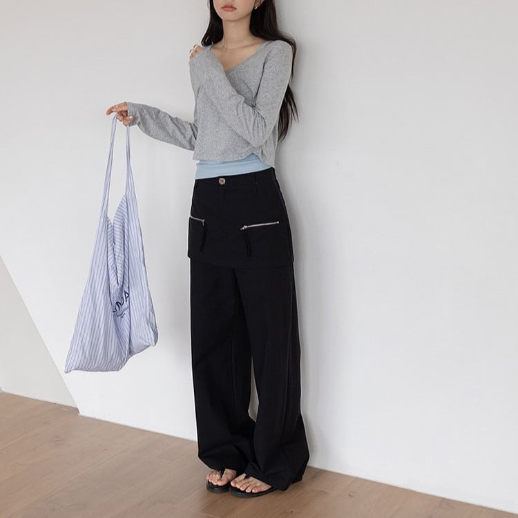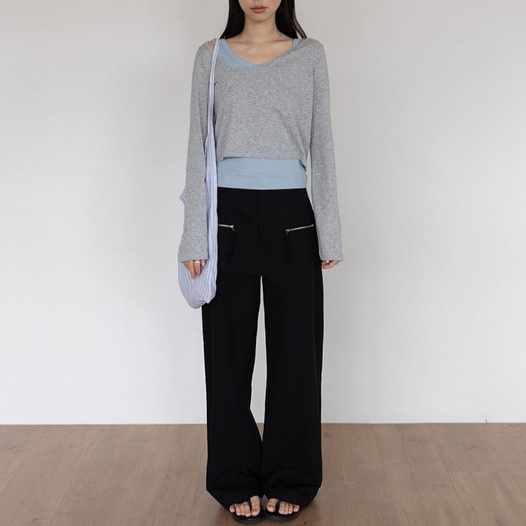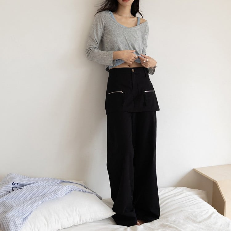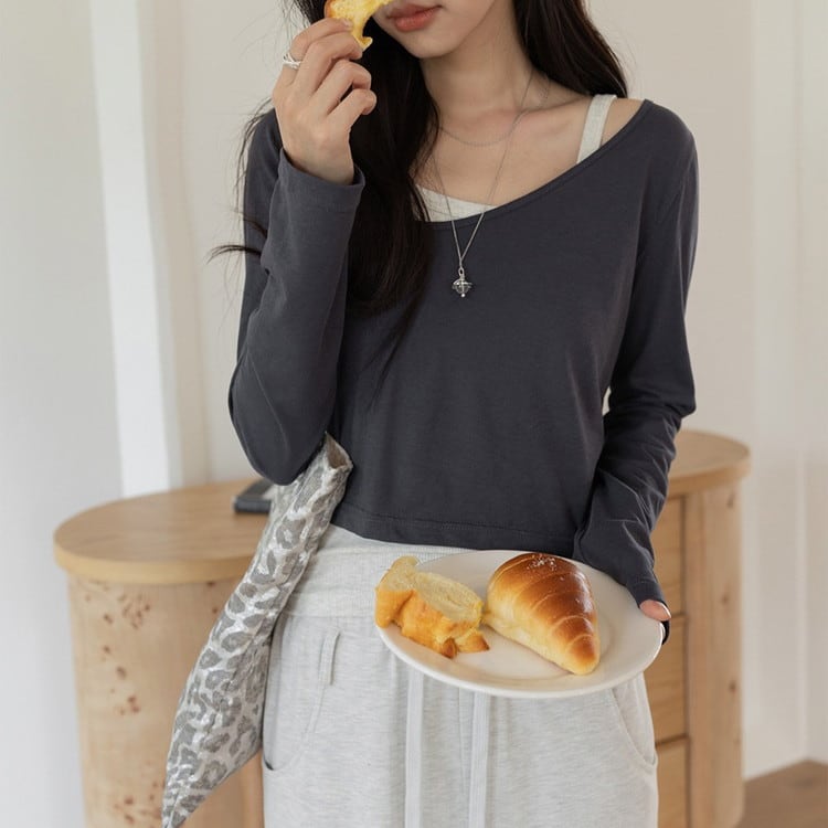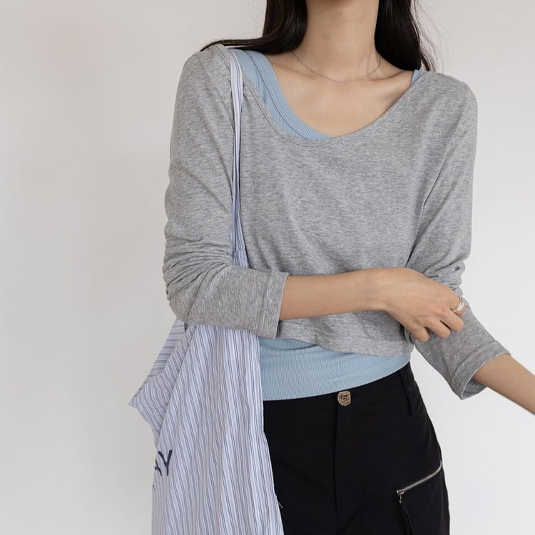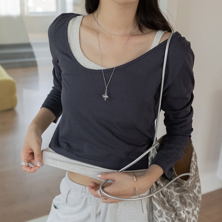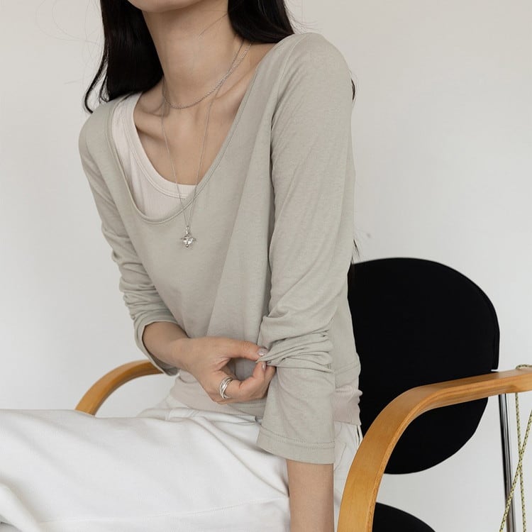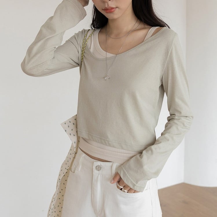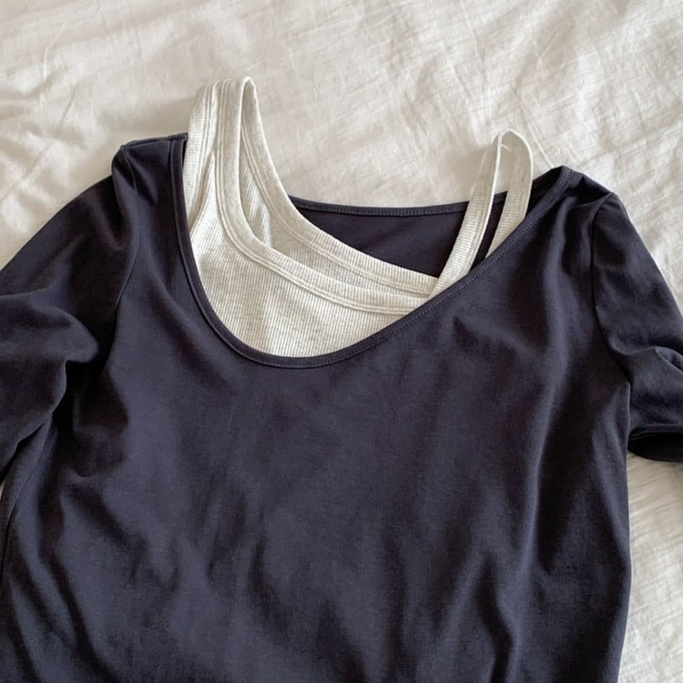 アシンメトリーロンTeeタンクレイヤードセット 3color [am03761]
