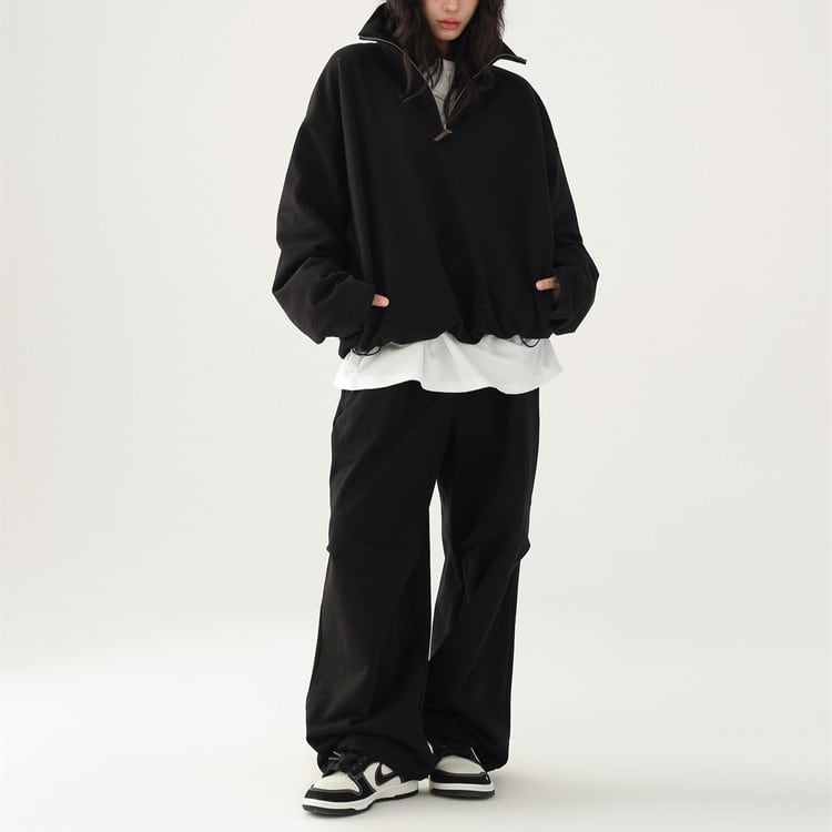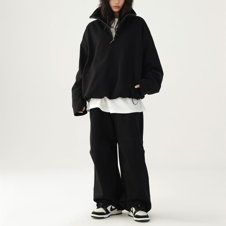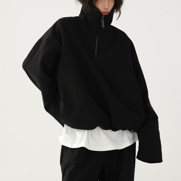 トレンド感溢れるオーバーサイズハーフジップスウェットです。